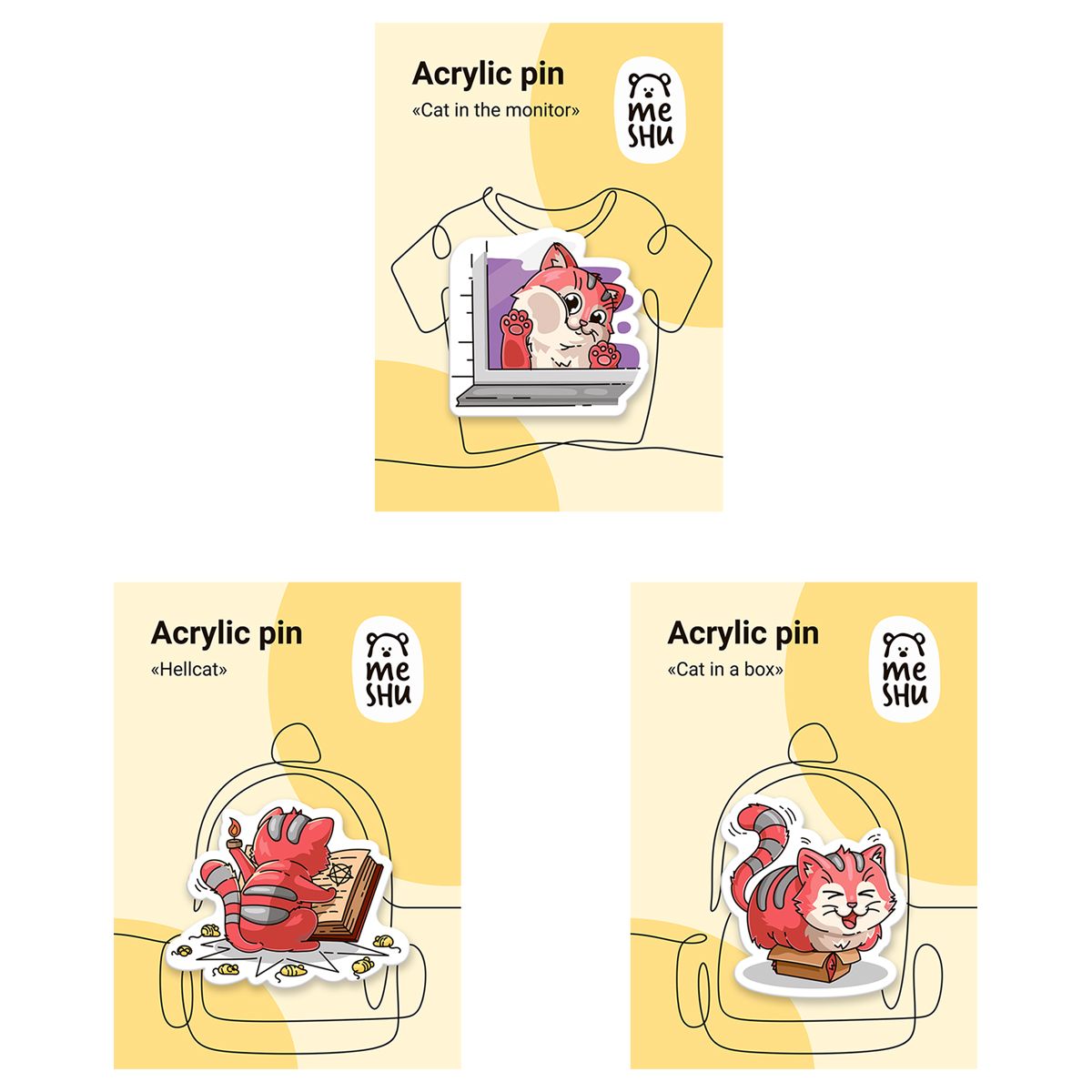 Набор акриловых значков MESHU "Hellcat", прямая УФ-печать, 3шт.