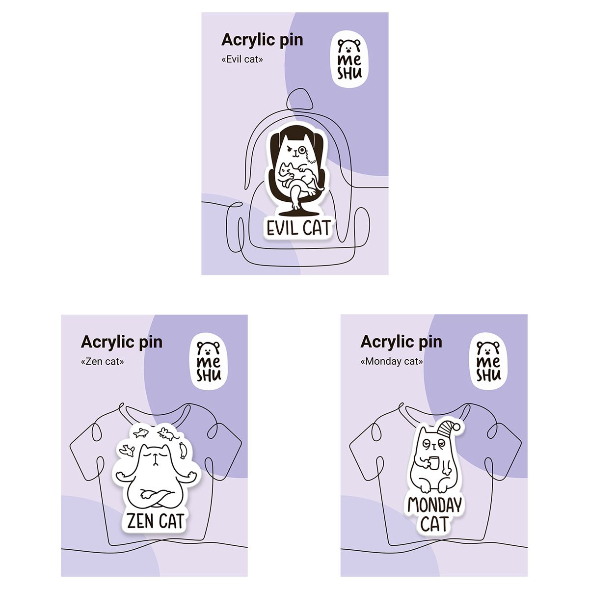 Набор акриловых значков MESHU "Such different cats", прямая УФ-печать, 3шт.