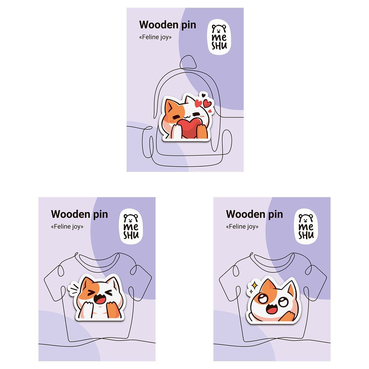 Набор деревянных значков MESHU "Feline joy", каширование, 3шт.