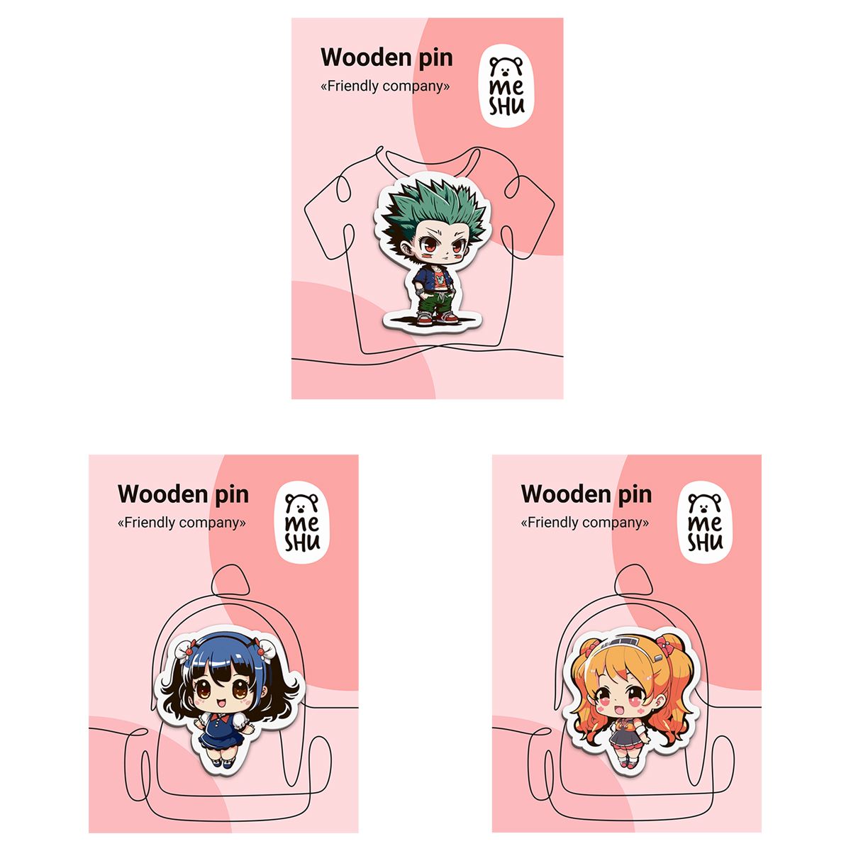 Набор деревянных значков MESHU "Friendly company", каширование, 3шт.
