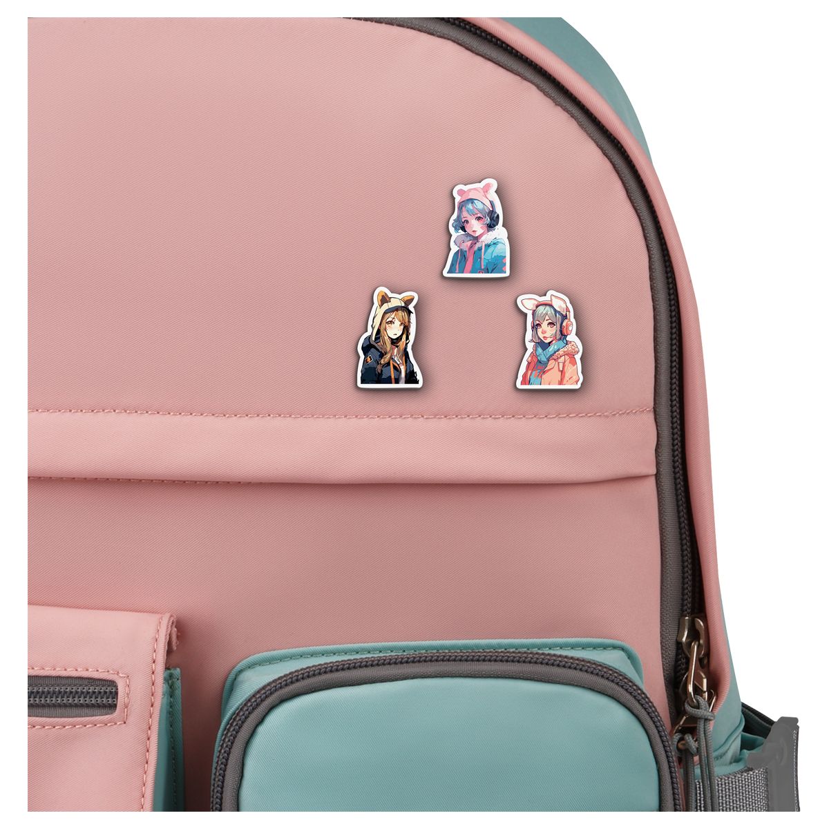 Набор деревянных значков MESHU "Girls with ears", каширование, 3шт.