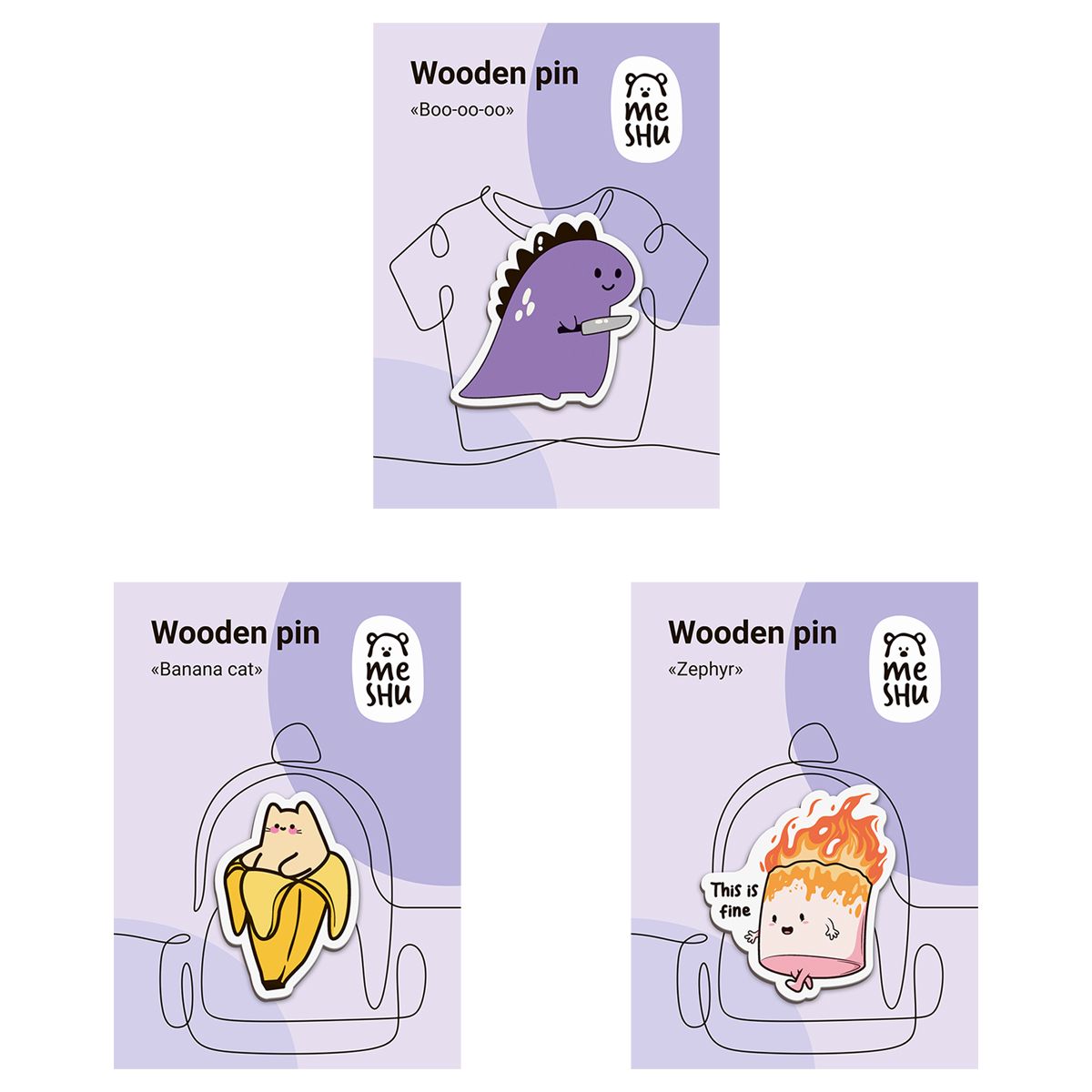 Набор деревянных значков MESHU "Inadequate company", каширование, 3шт.