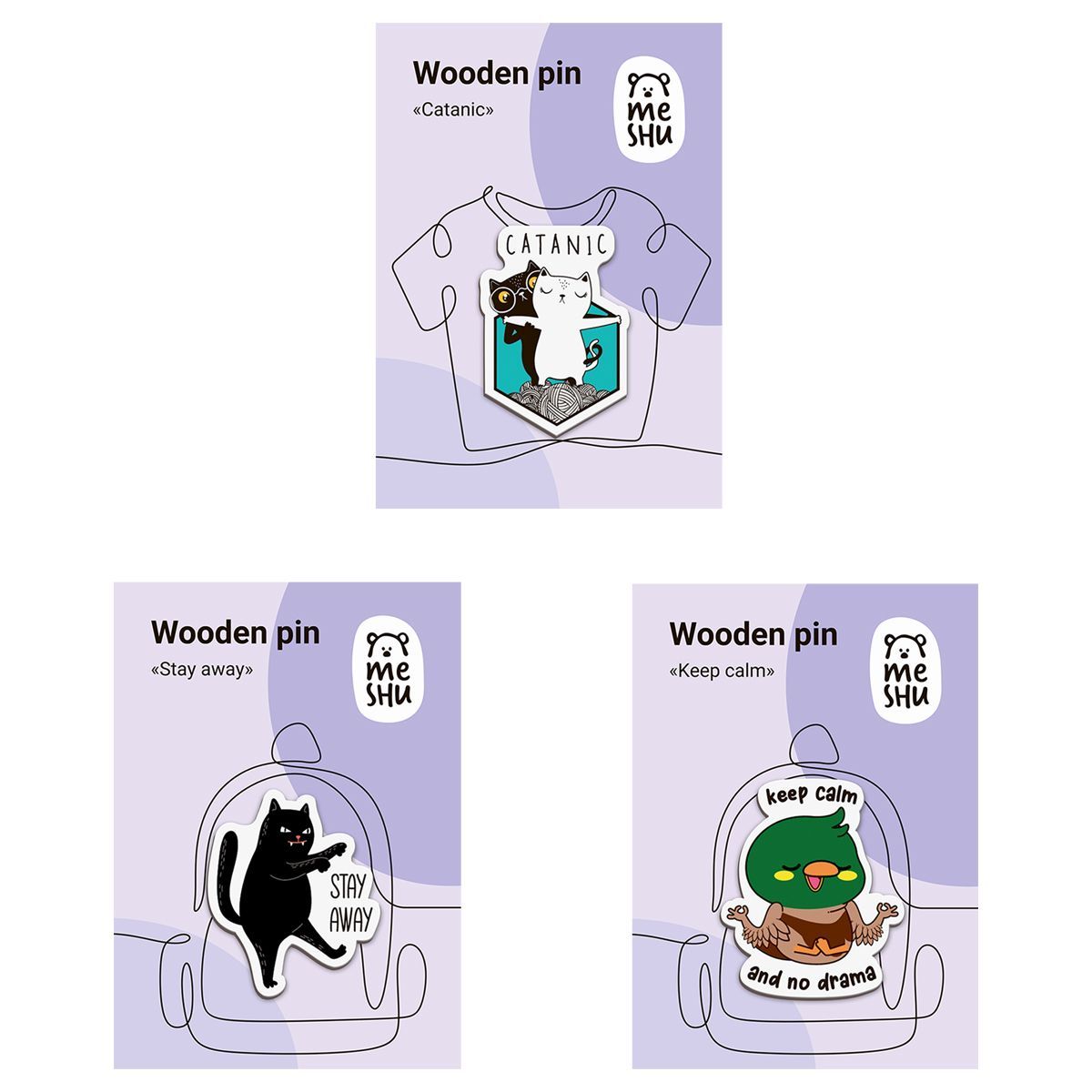 Набор деревянных значков MESHU "Keep calm", каширование, 3шт.