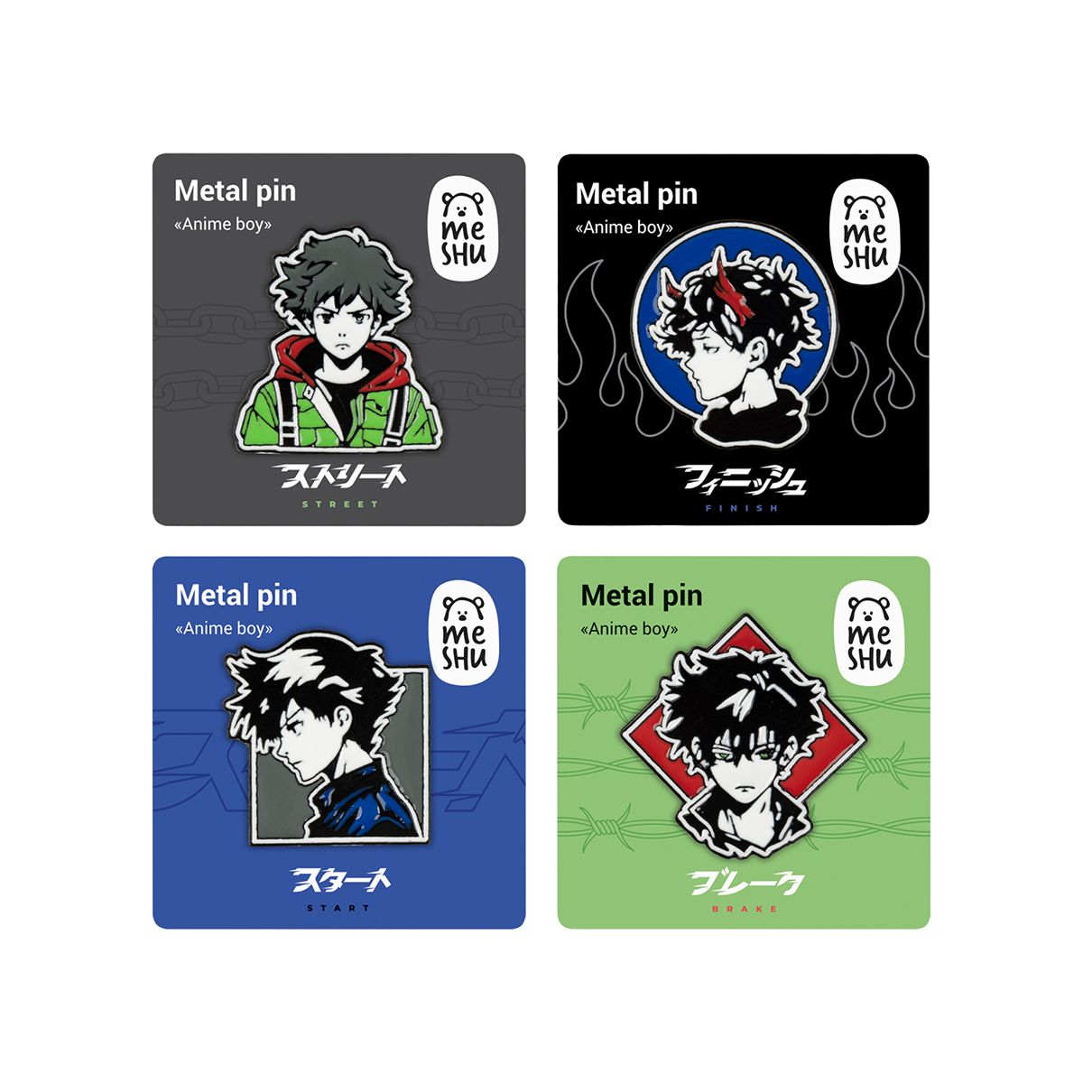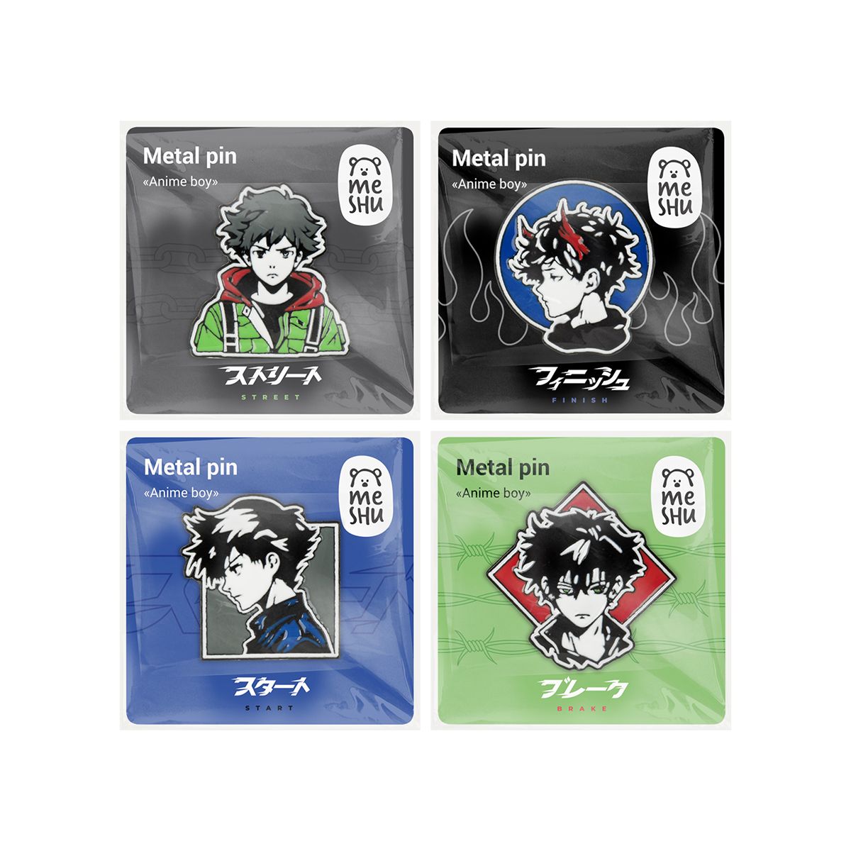 Набор металлических значков MESHU "Anime boys", эмаль, 4шт, картонная подложка, европодвес