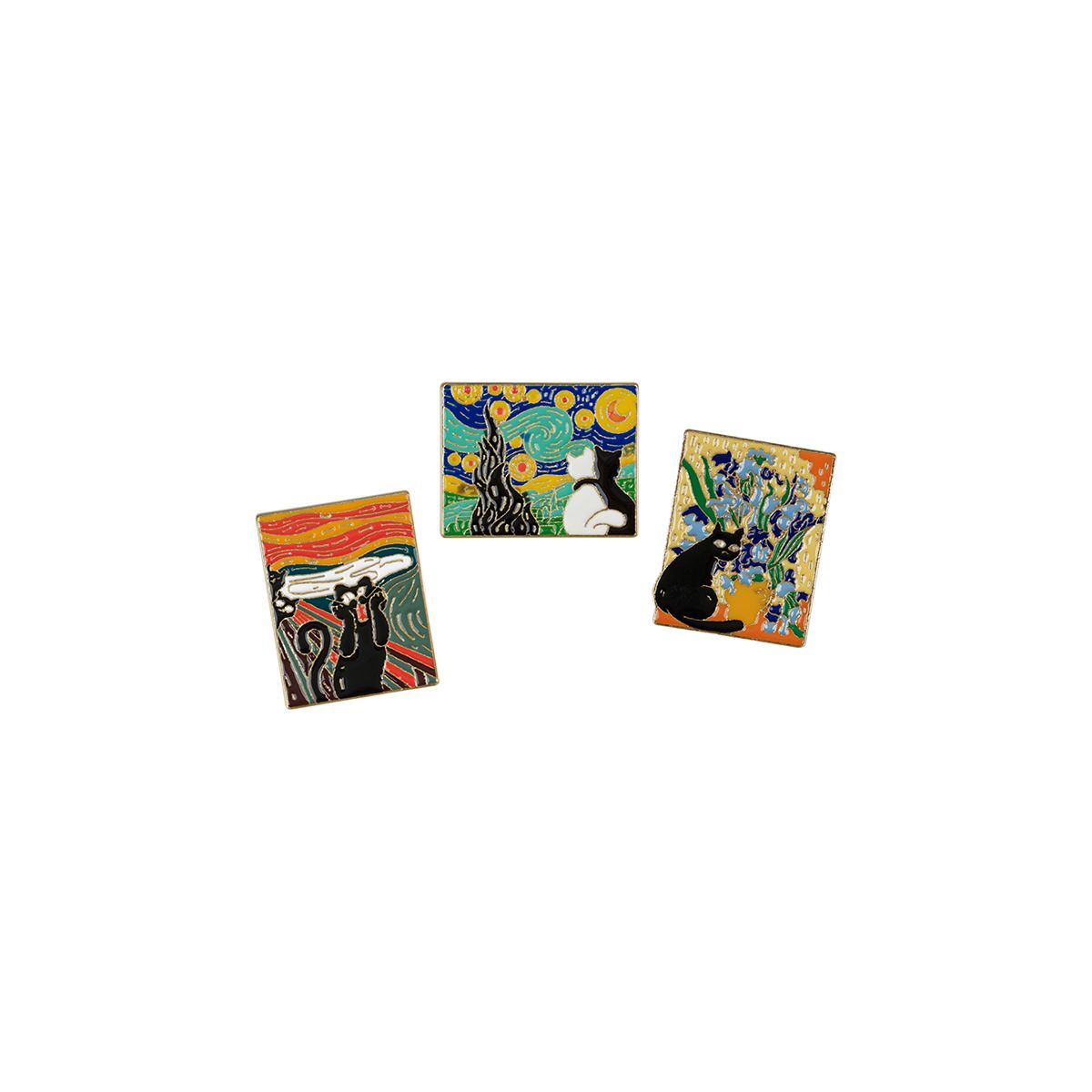 Набор металлических значков MESHU "Cats and art", эмаль, 3шт, картонная подложка, европодвес