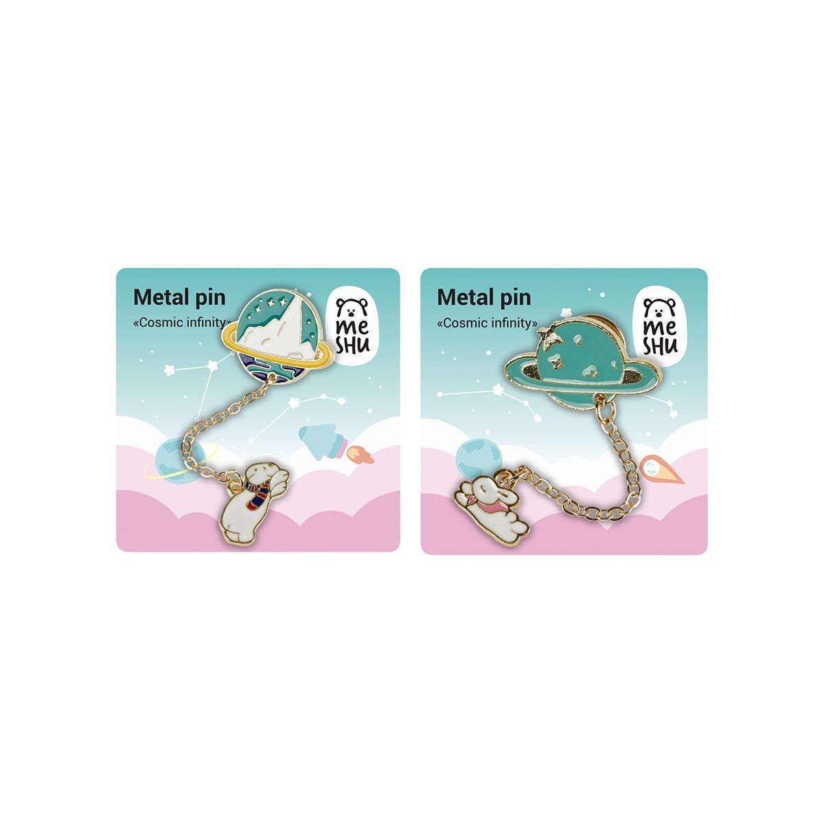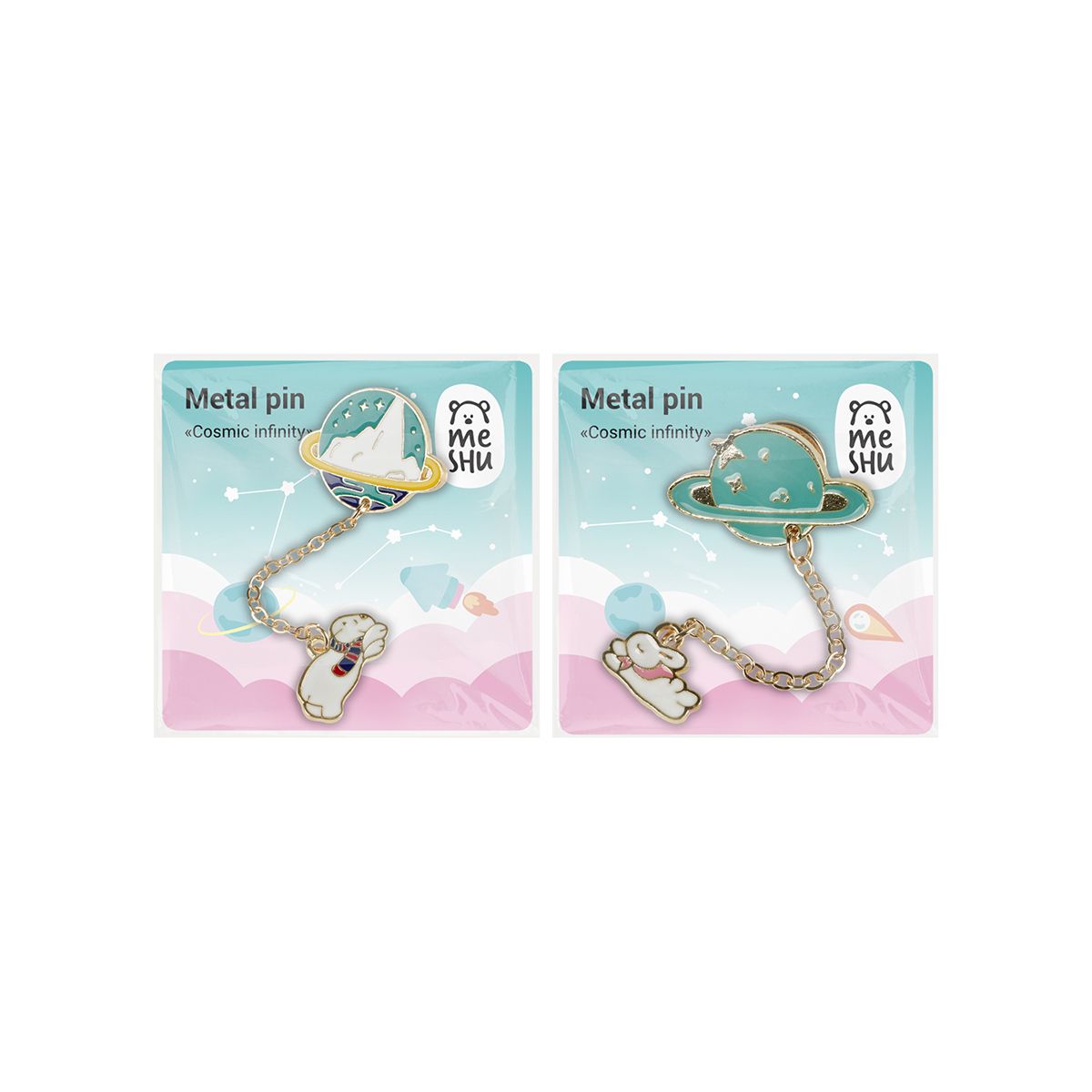Набор металлических значков MESHU "Cosmic infinity", эмаль, 2шт, картонная подложка, европодвес