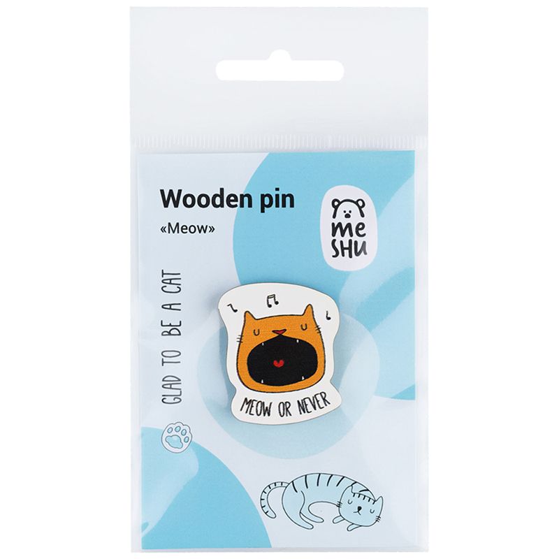 Значок деревянный MESHU "Meow", прямая УФ-печать, 2,9*3,4см
