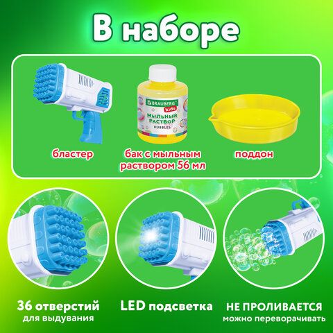 Мыльные пузыри Бластер Генератор погружной с подсветкой, раствор 56 мл, BRAUBERG KIDS, 665146