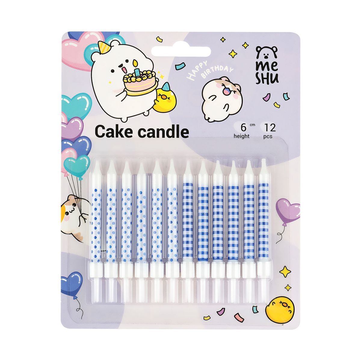 Свечи для торта с держателями MESHU "Blue pattern", ассорти, 6см, 12шт