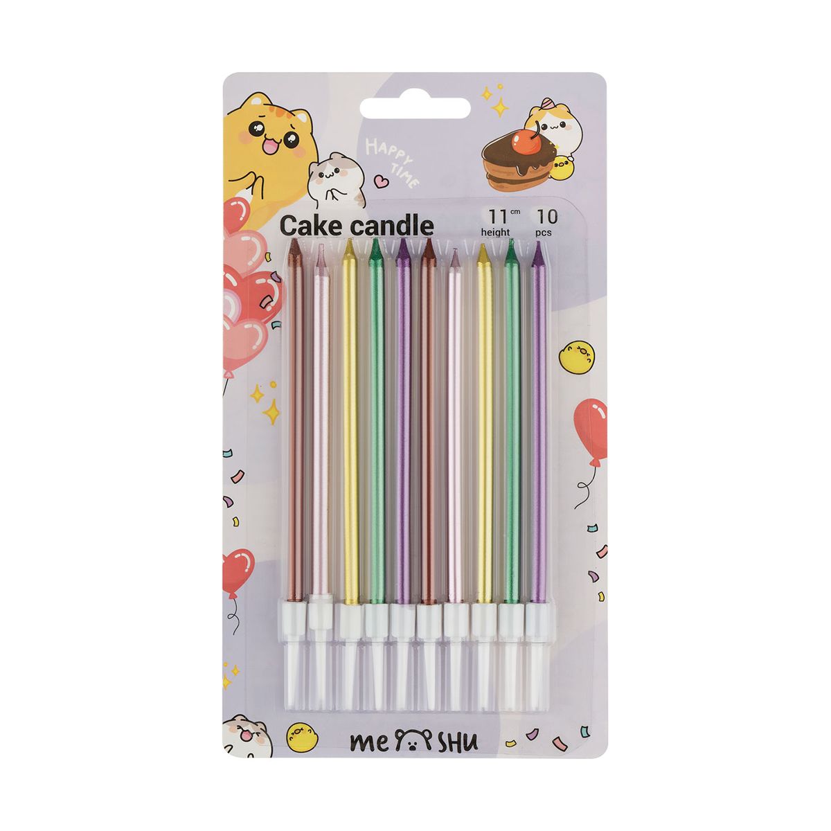 Свечи для торта с держателями MESHU "Metallic", ассорти, 11см, 10шт