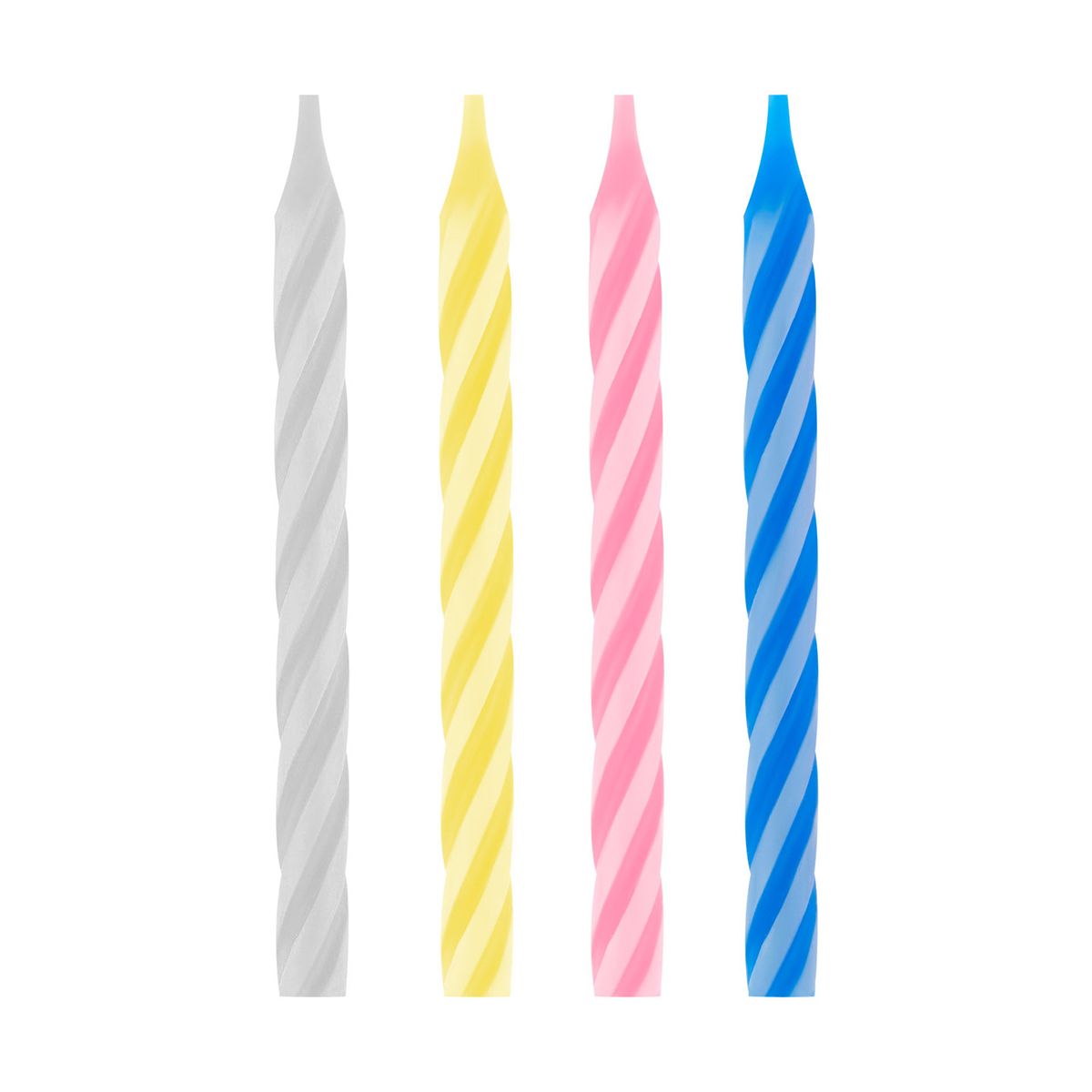 Двухцветные свечи станут ярким акцентом в праздничной обстановке. Благодаря держателю их легко установить на угощении. Высота — 6 см. Миниатюрные свечи будут отлично смотреться на кексах или бенто-торте.