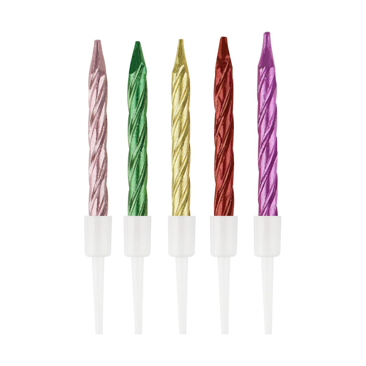 Разноцветные металлизированные свечи станут ярким акцентом в праздничной обстановке. Благодаря держателю их легко установить на угощении. Высота — 6 см. Миниатюрные свечи будут отлично смотреться на кексах или бенто-торте.