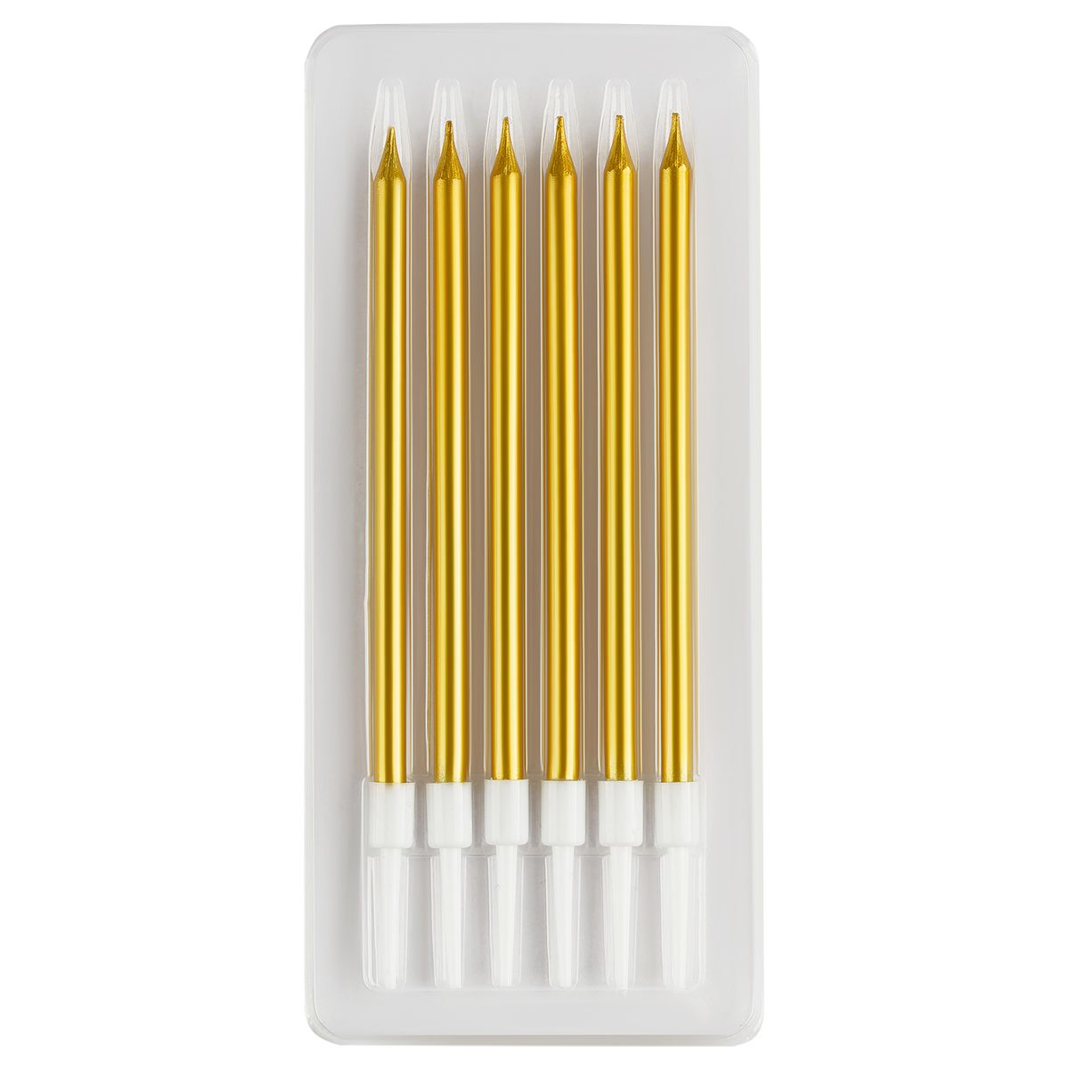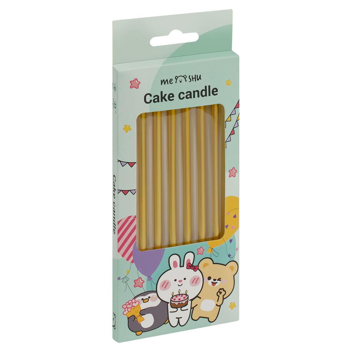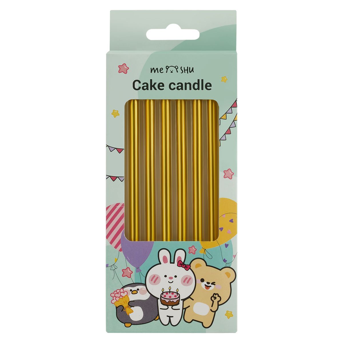 Свечи для торта с держателями MESHU "Straight gold", 11см, 6шт