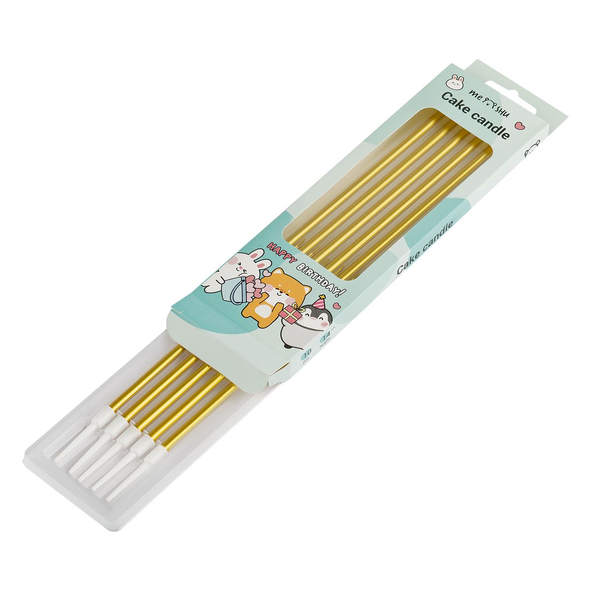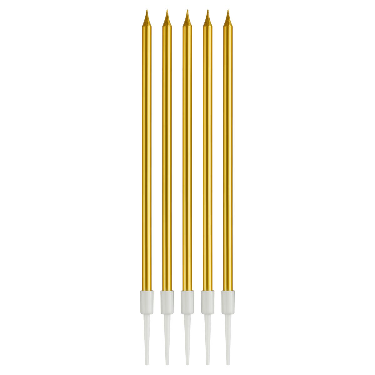 Свечи для торта с держателями MESHU "Straight gold", 14см, 10шт