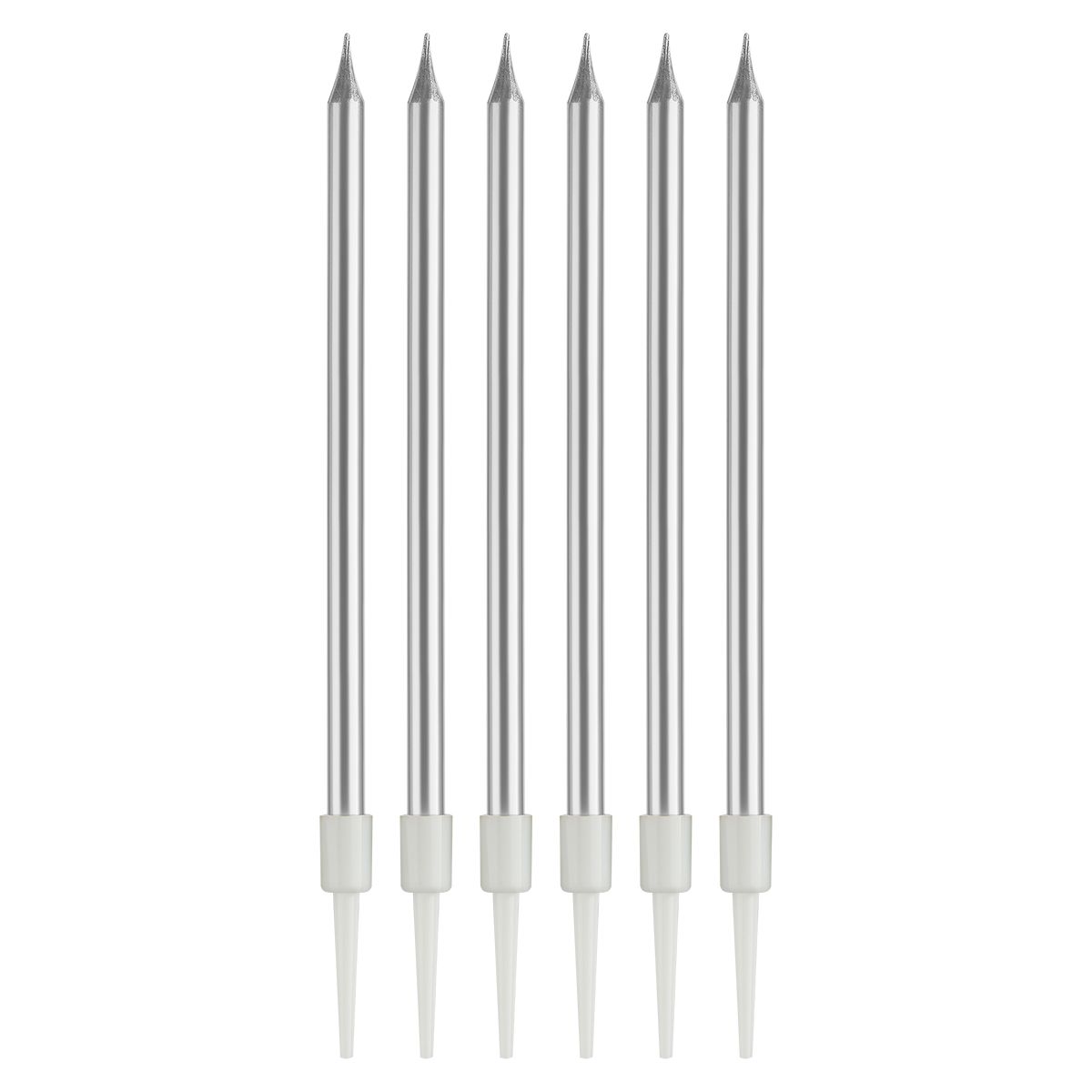 Свечи для торта с держателями MESHU "Straight silver", 11см, 6шт.