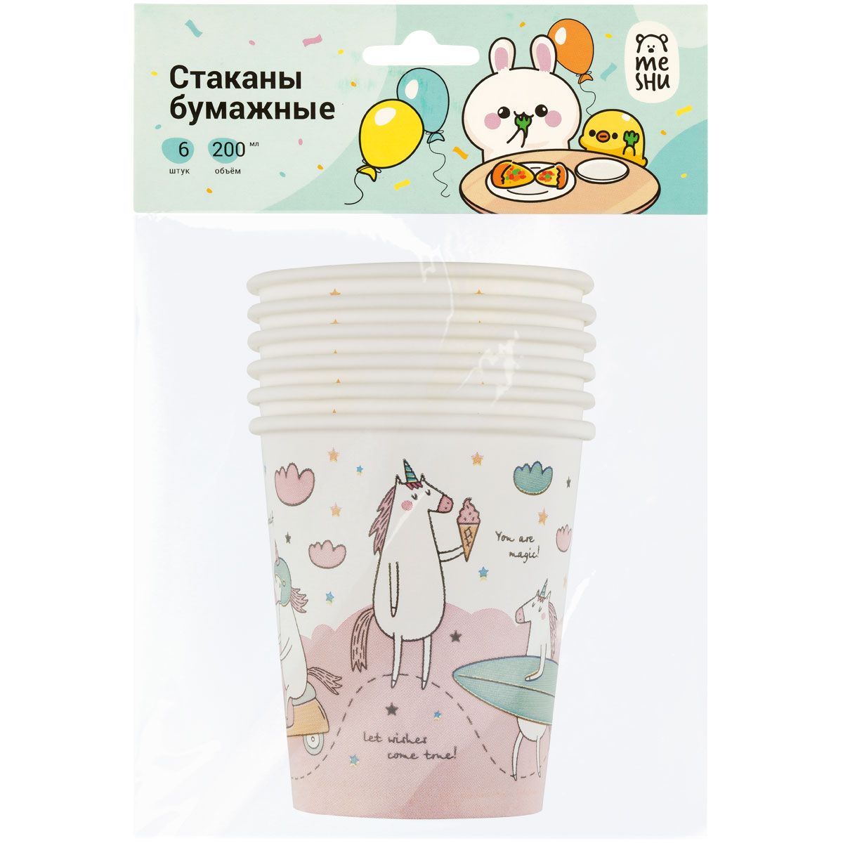 Стаканы бумажные MESHU "Unicorn", 200мл, 6шт.