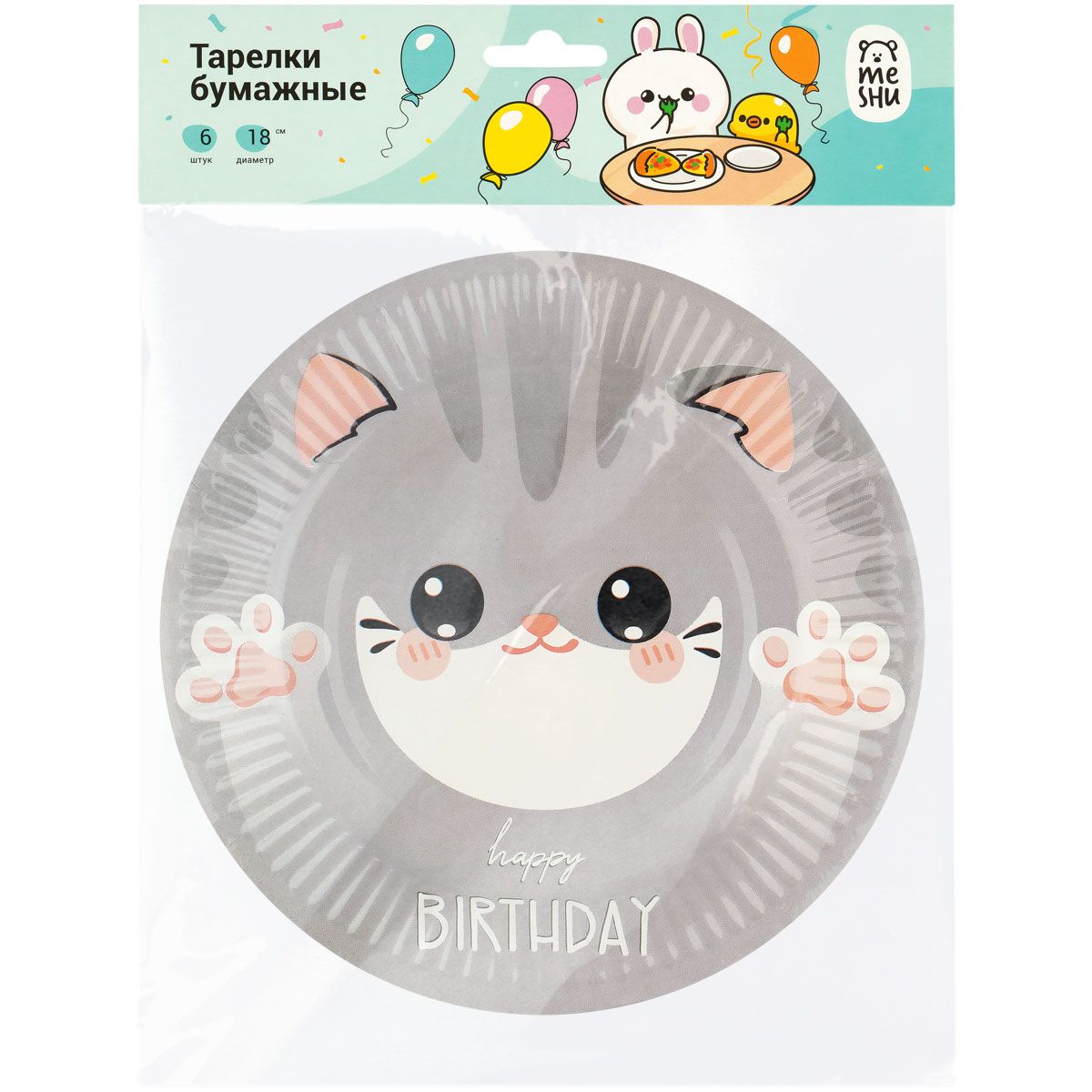 Тарелки бумажные MESHU "Kitten", 18см, 6шт.