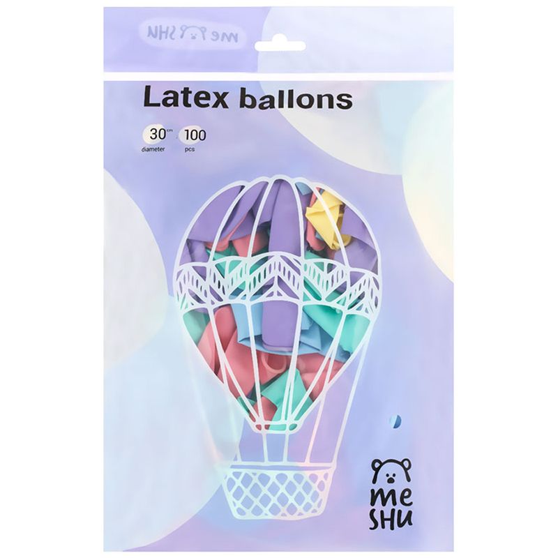 Воздушные шары, 100шт., М12/30см, MESHU "Macaroons", пастель, ассорти
