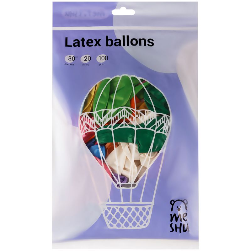 Воздушные шары, 100шт., М12/30см, MESHU, металлик, 20 цветов ассорти