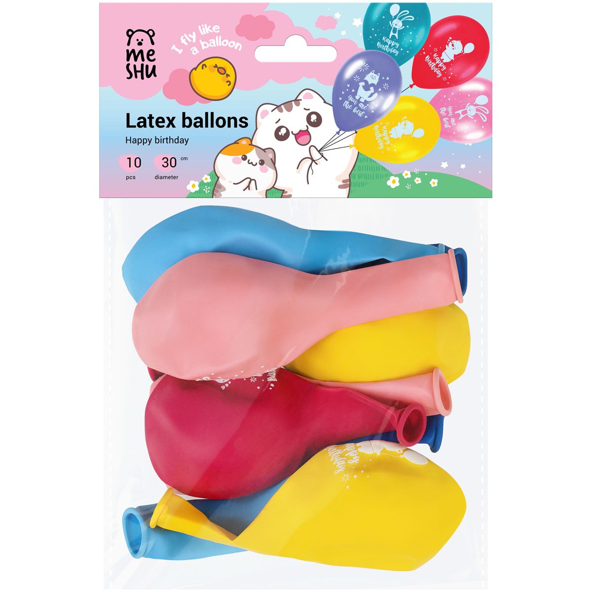 Воздушные шары, 10шт., М12/30см, MESHU "Happy birthday", пастель, ассорти