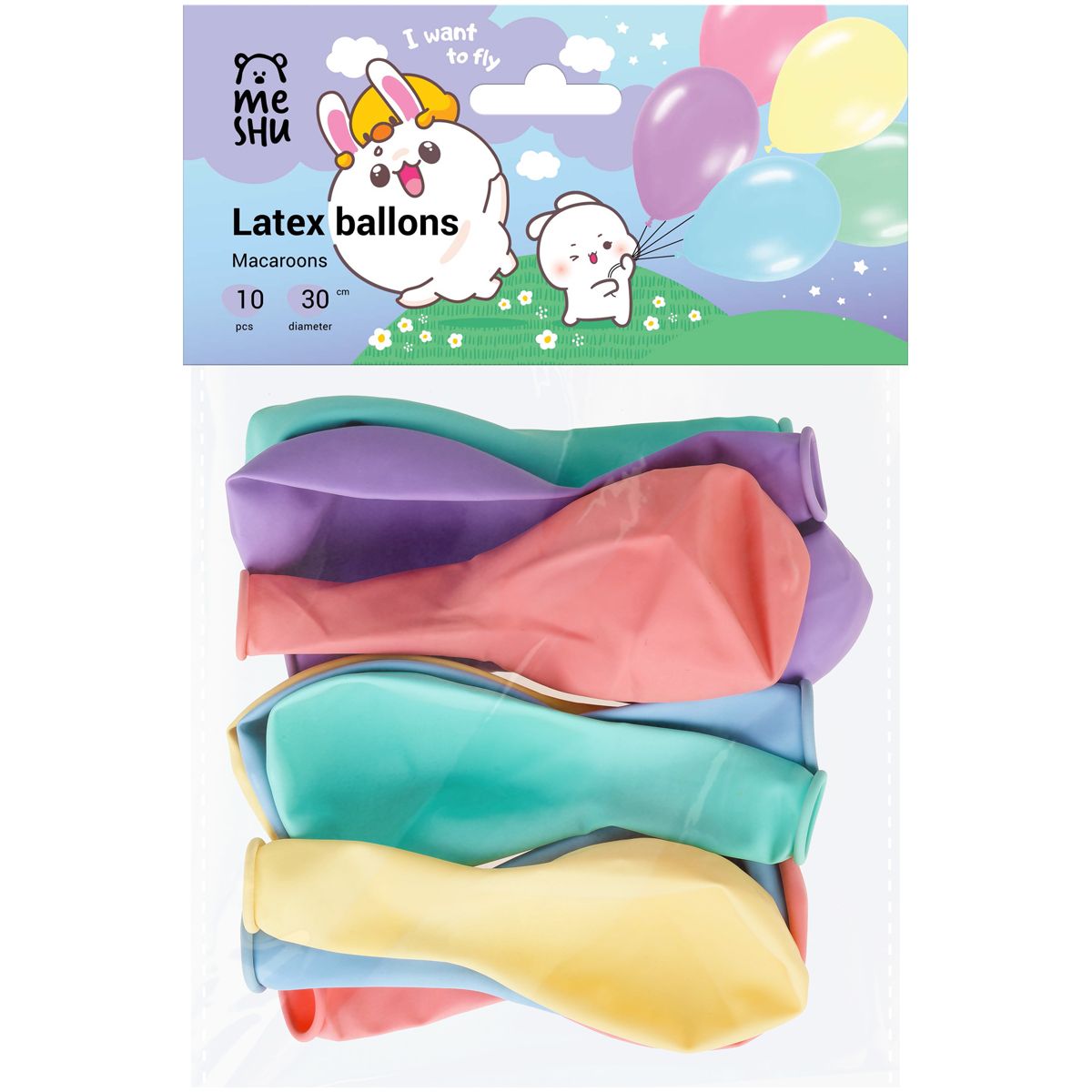 Воздушные шары, 10шт., М12/30см, MESHU "Macaroons", пастель, 5 цветов ассорти