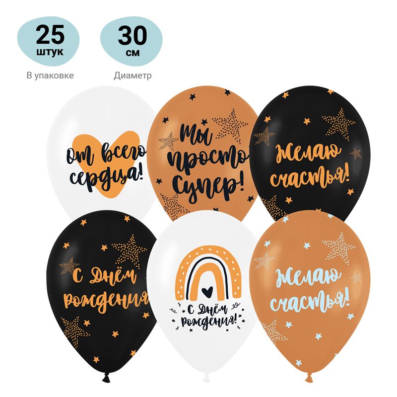Воздушные шары, 25шт., М12/30см, MESHU "Gold party", пастель, ассорти