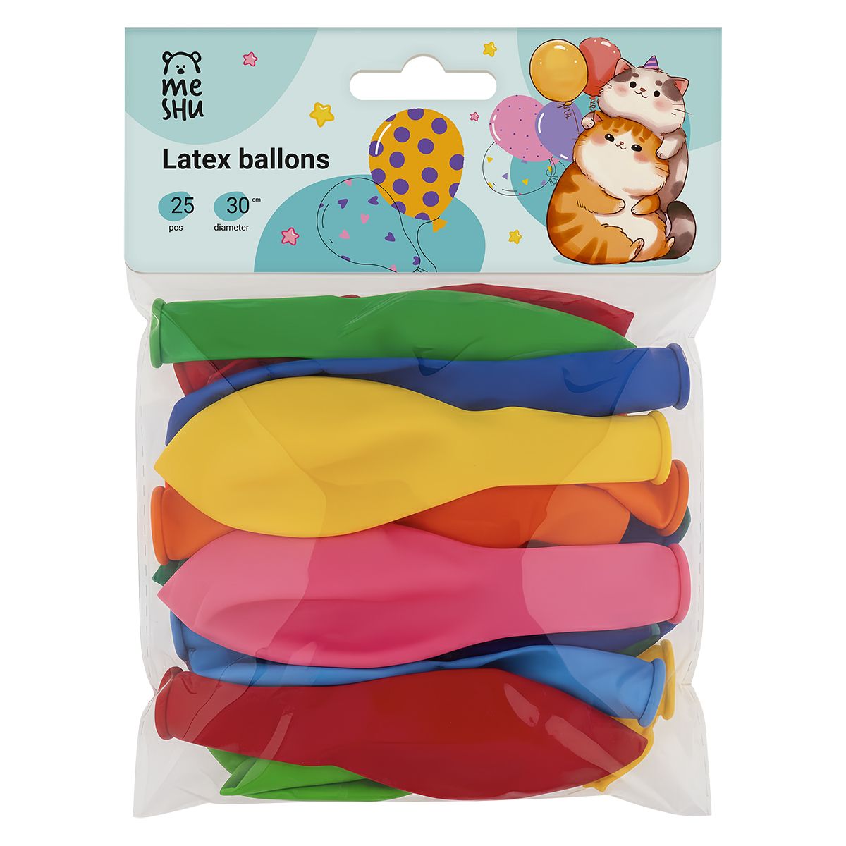 Воздушные шары, 25шт., М12/30см, MESHU, пастель, 10 цветов ассорти