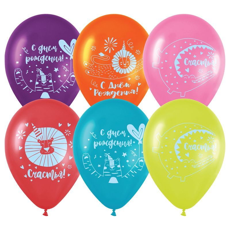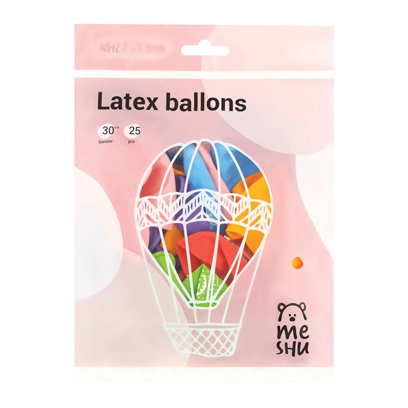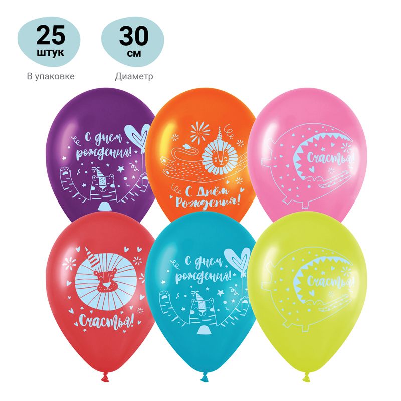 Воздушные шары, 25шт., М12/30см, MESHU "С Днем Рождения", пастель, ассорти