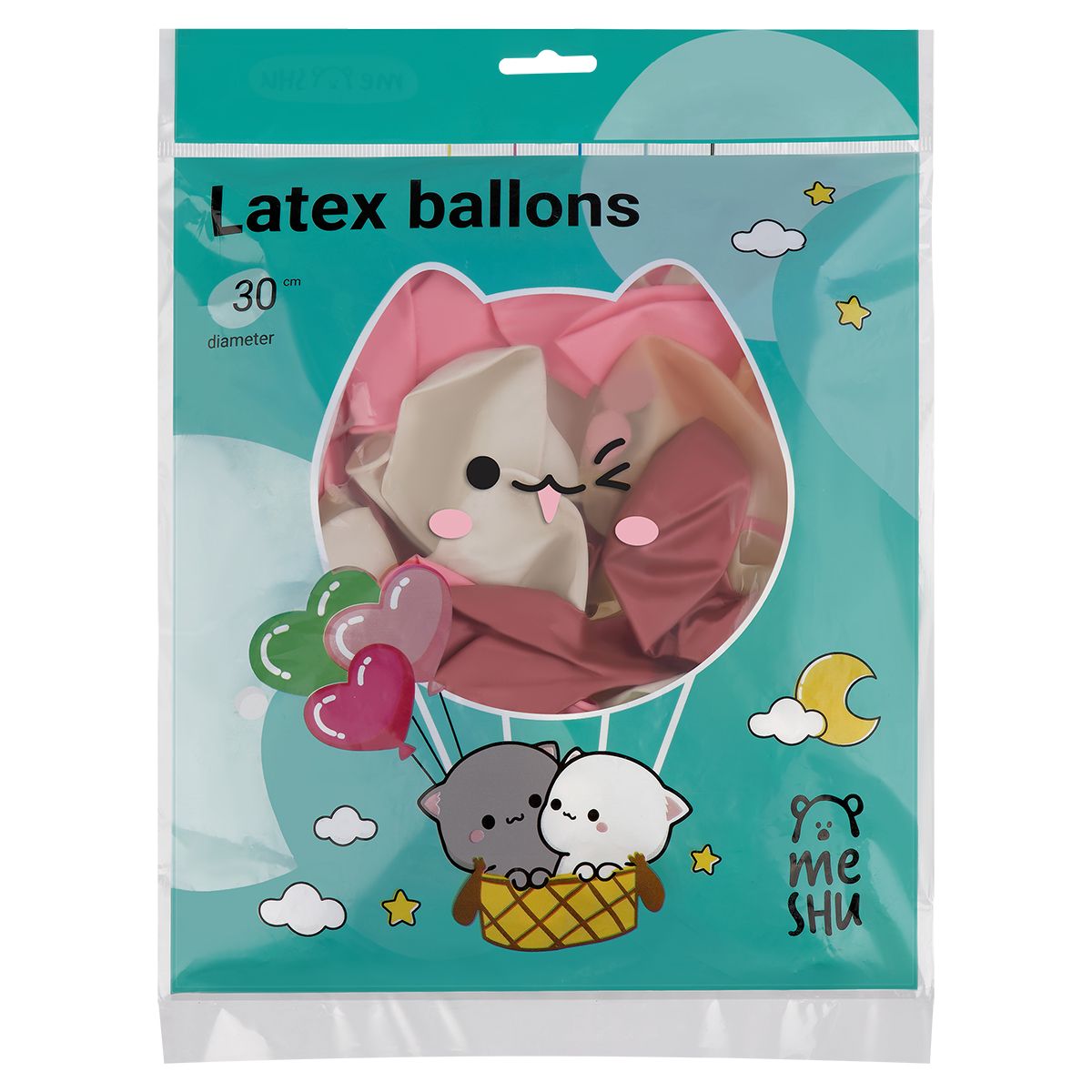 Воздушные шары, 40шт., М12/30см, MESHU, "Rose", 4 цвета ассорти