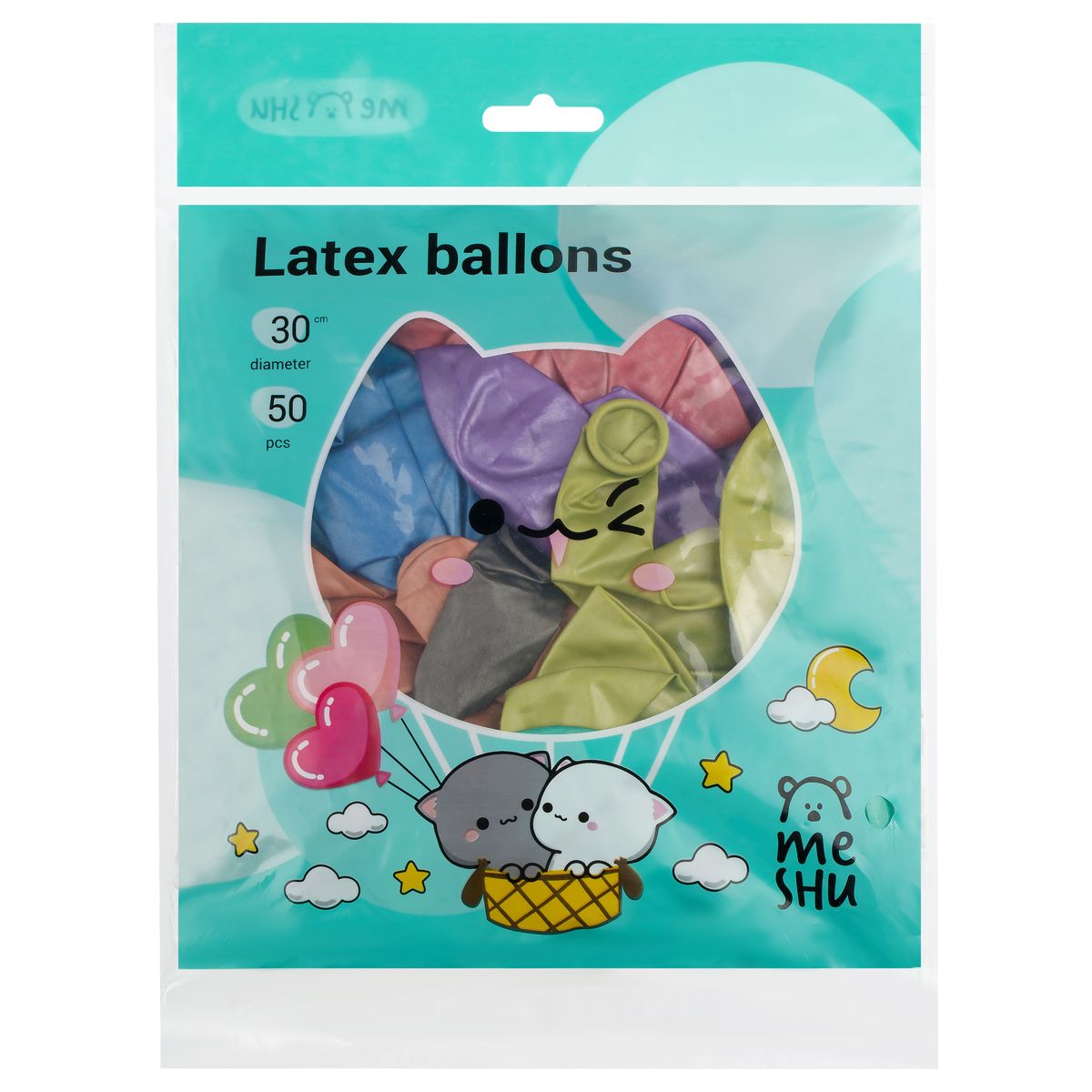 Воздушные шары, 50шт., М12/30см, MESHU, хром, 10 цветов ассорти