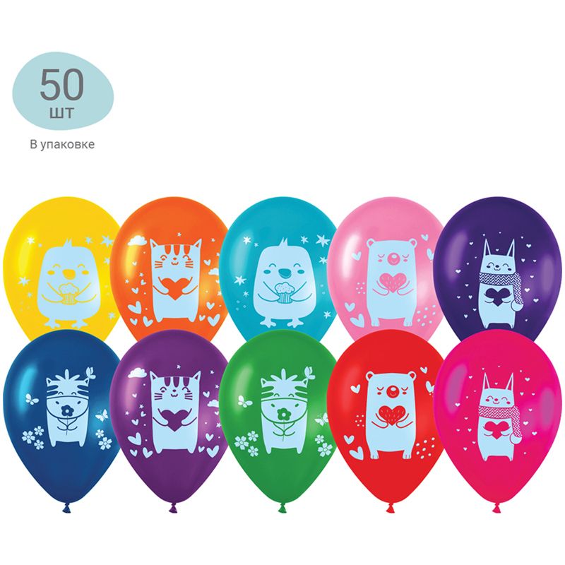 Воздушные шары, 50шт., М12/30см, MESHU "Kids friends", пастель, ассорти
