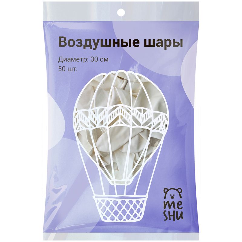Воздушные шары, 50шт., М12/30см, MESHU, пастель, белый