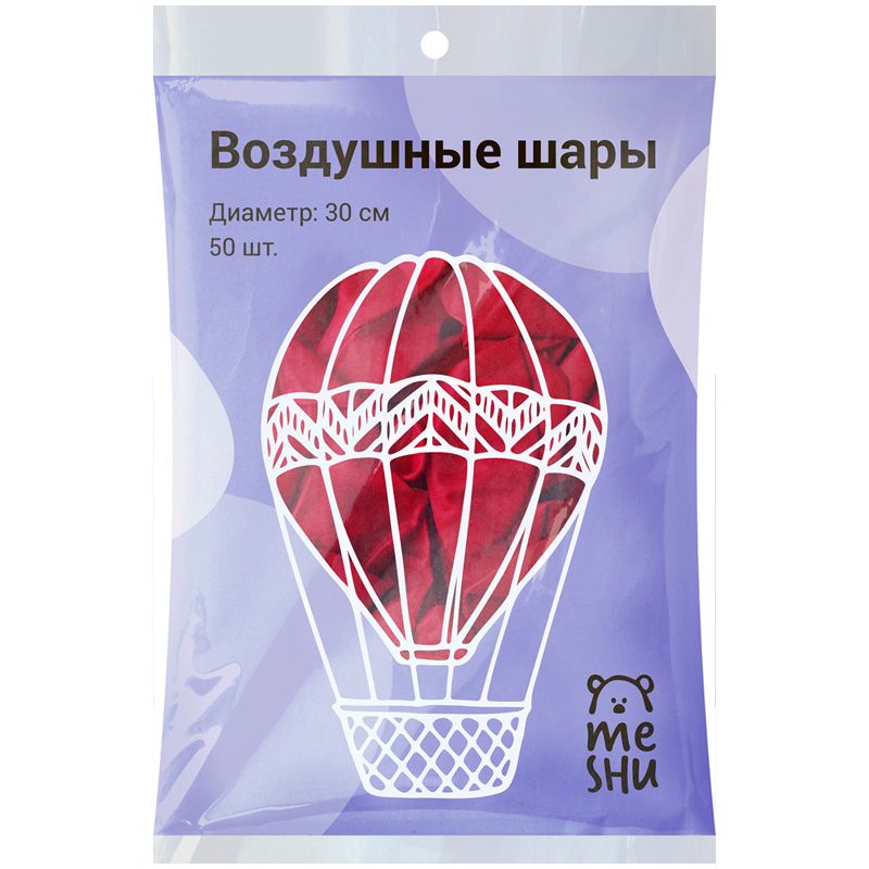 Воздушные шары, 50шт., М12/30см, MESHU, пастель, красный