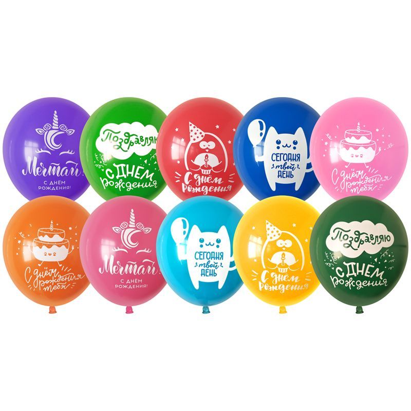 Воздушные шары, 50шт., М12/30см, MESHU "С Днем Рождения", пастель, ассорти