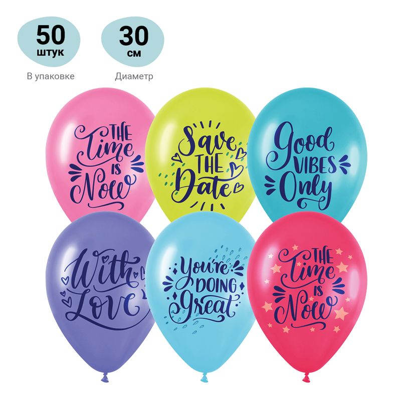 Воздушные шары, 50шт., М12/30см, MESHU "Warm wishes", пастель, ассорти