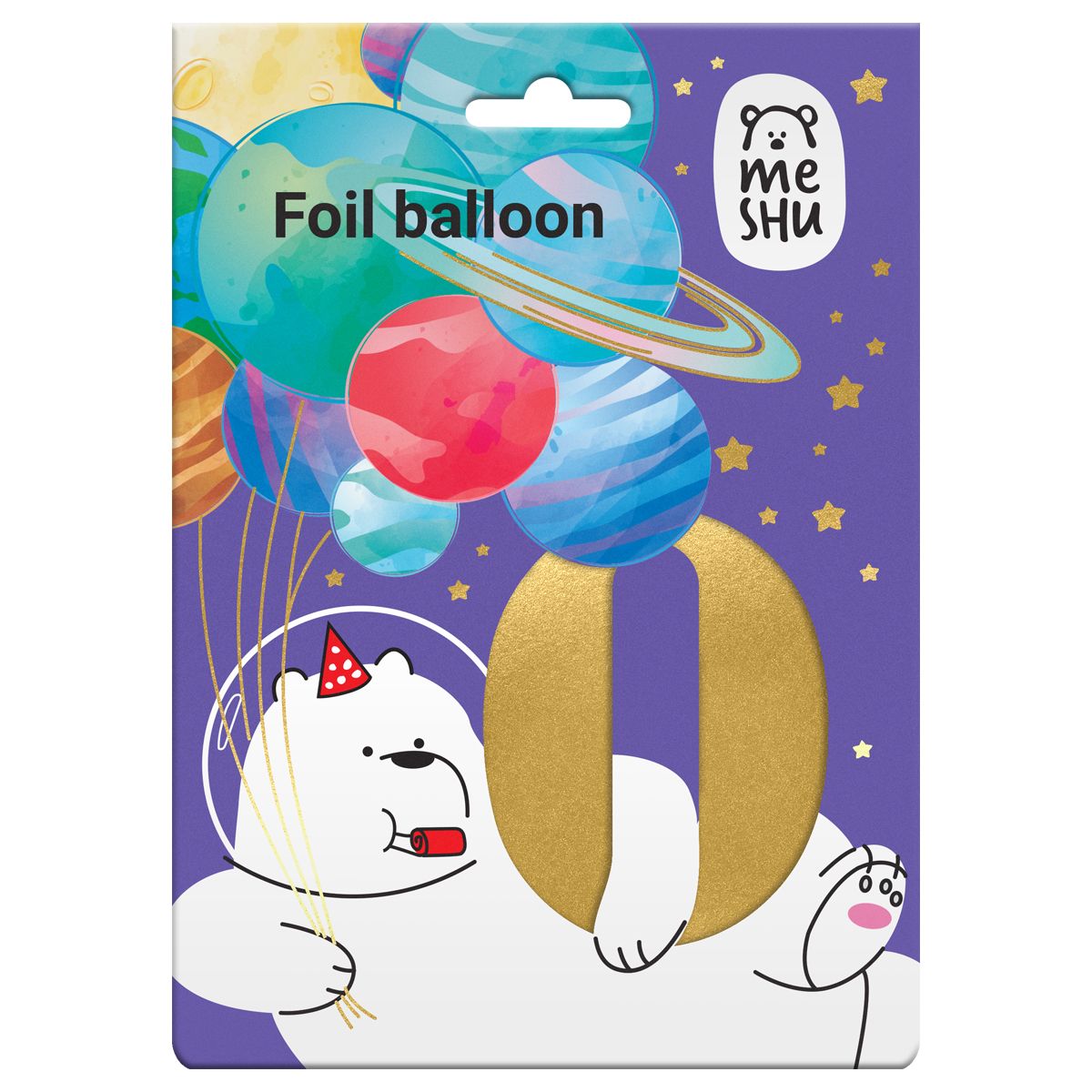 Воздушный шар, 40", MESHU, цифра 0, золотой, фольгированный