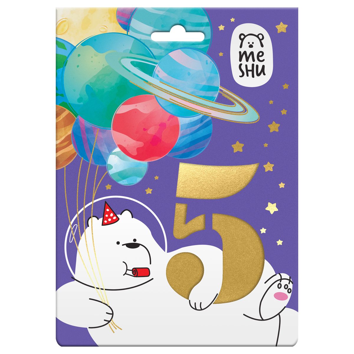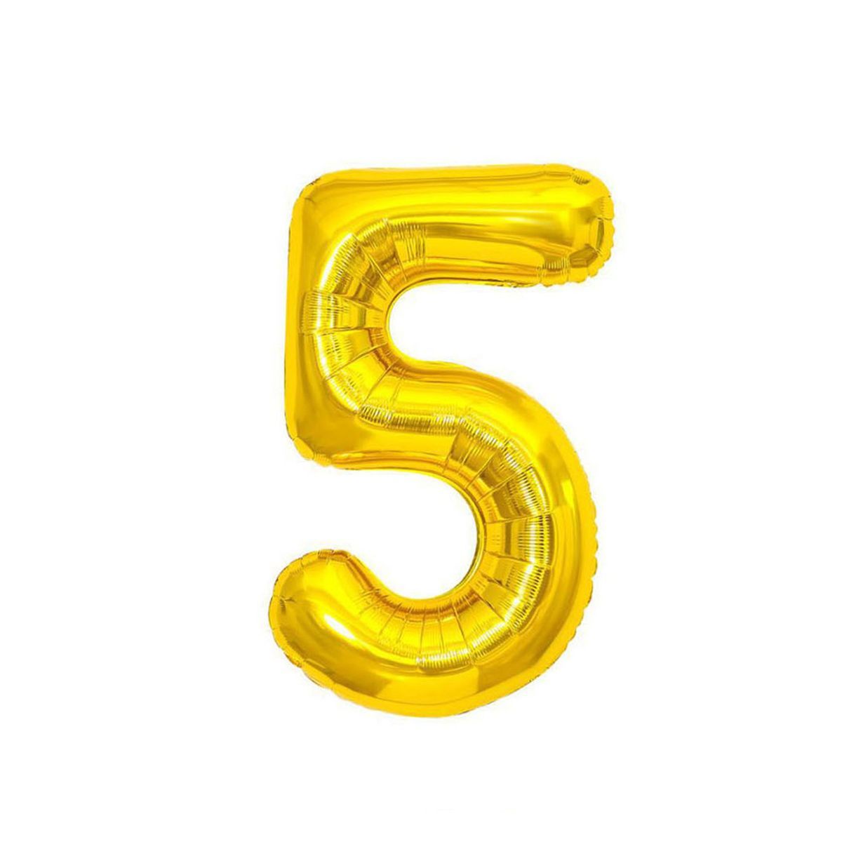 Воздушный шар, 40", MESHU, цифра 5, золотой, фольгированный