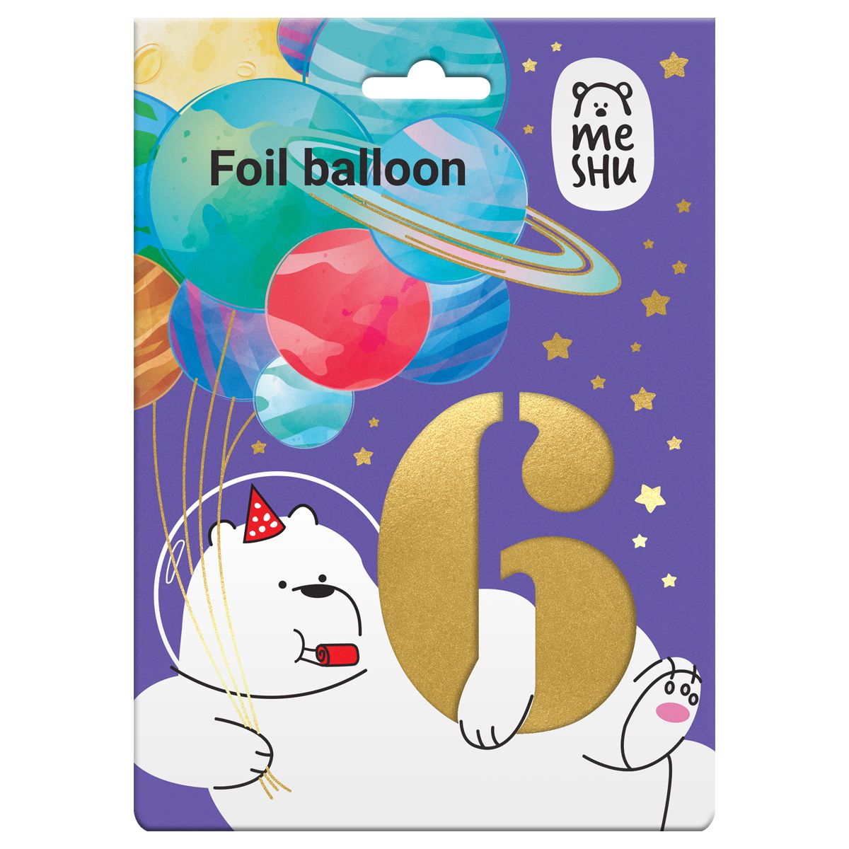 Воздушный шар, 40", MESHU, цифра 6, золотой, фольгированный