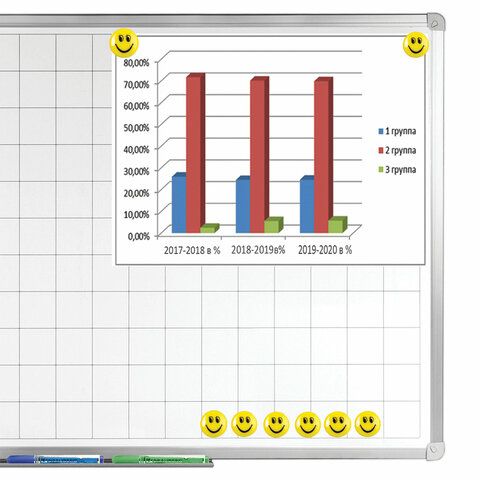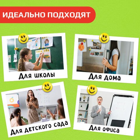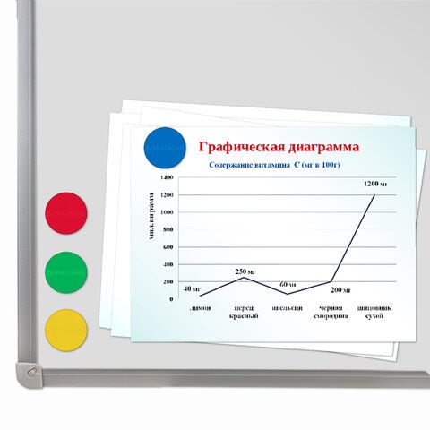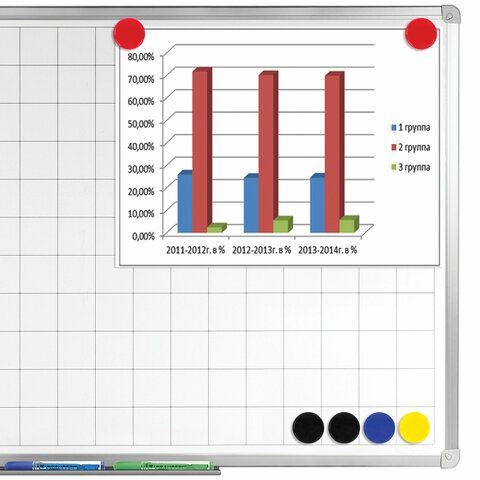 - Магниты для досок — в том числе стеклянные диаметром 35 мм, которые обеспечивают надёжное крепление документов.