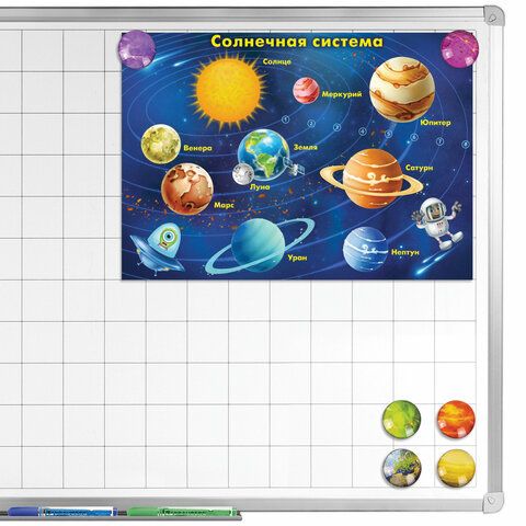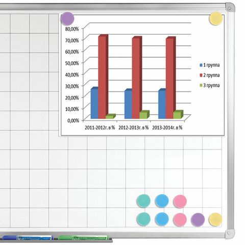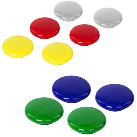 - Магниты для досок — в том числе стеклянные диаметром 35 мм, которые обеспечивают надёжное крепление документов.