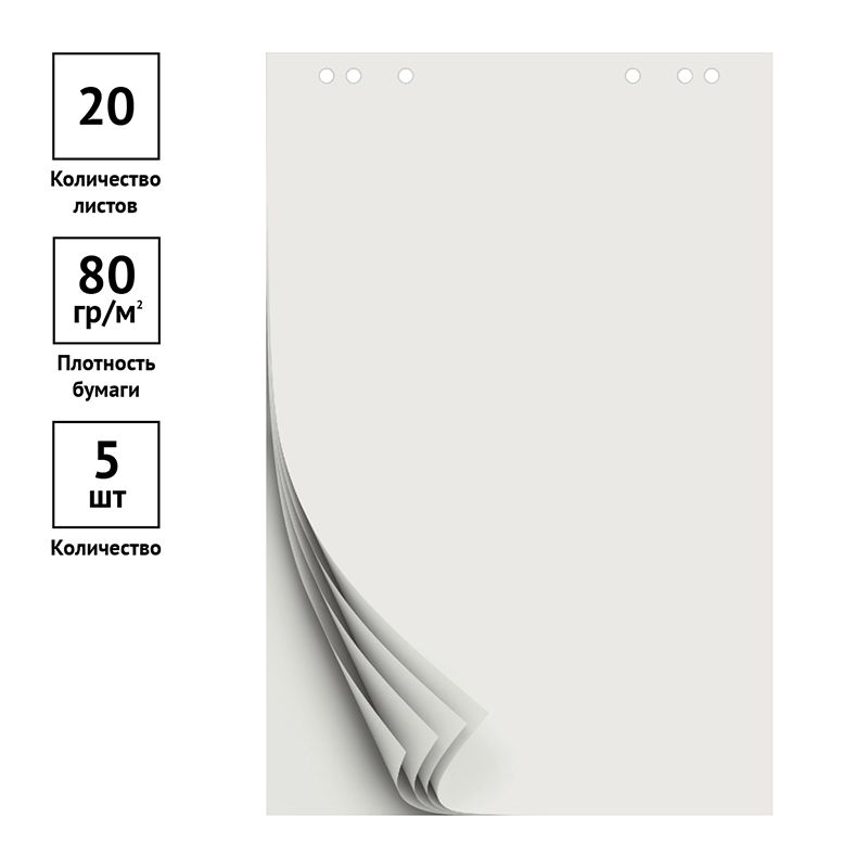 Блокнот для флипчарта OfficeSpace 67,5*98см, 20л., белый