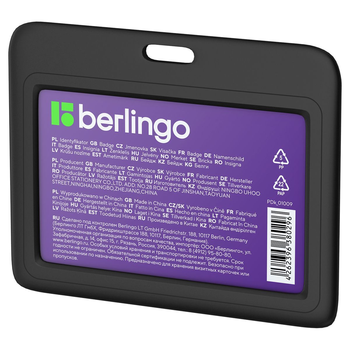 Бейдж горизонтальный Berlingo "ID 200", 85*55мм, черный, без держателя, крышка-слайдер