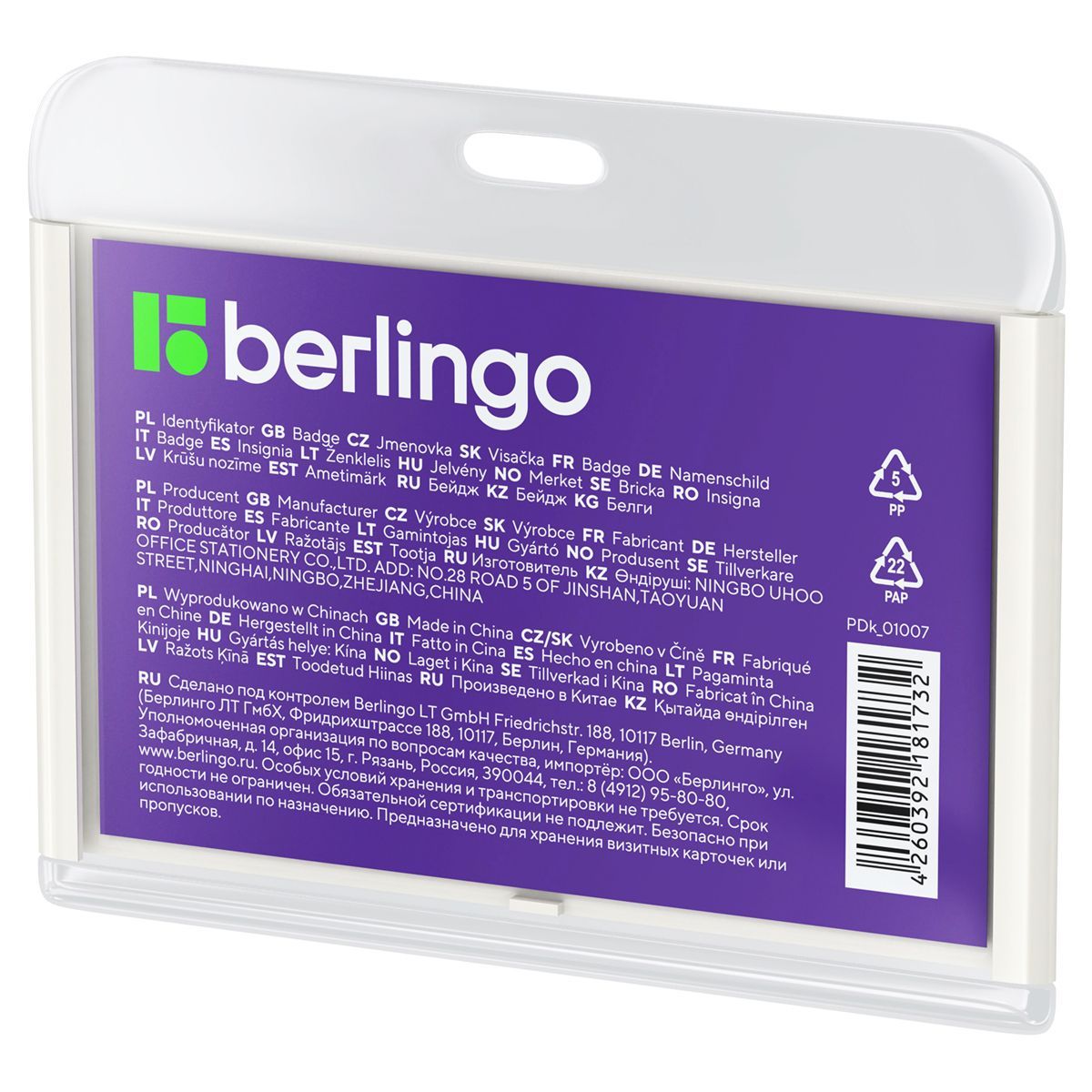 Бейдж горизонтальный Berlingo "ID 400", 55*85мм, светло-серый, без держателя