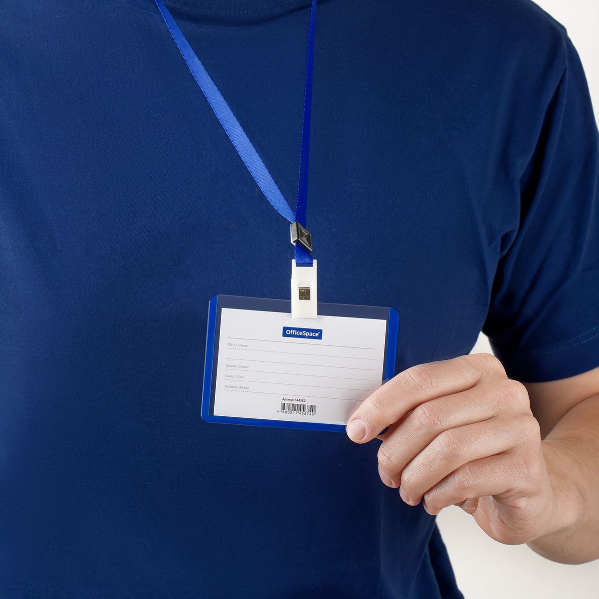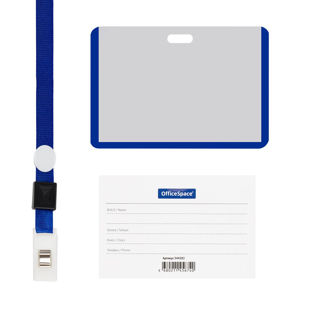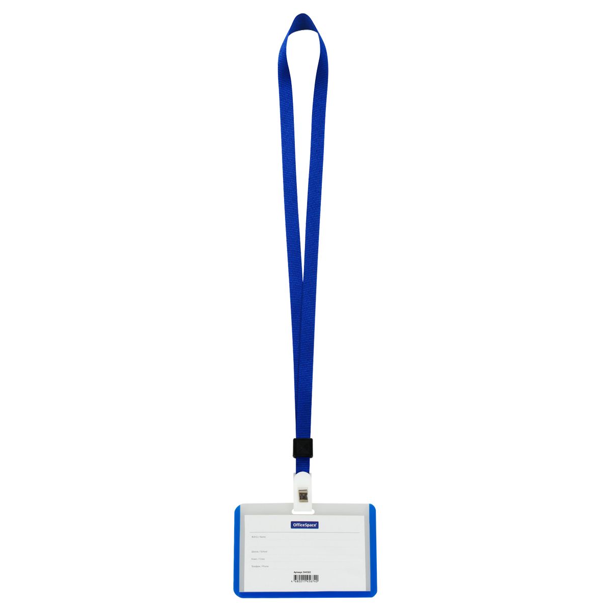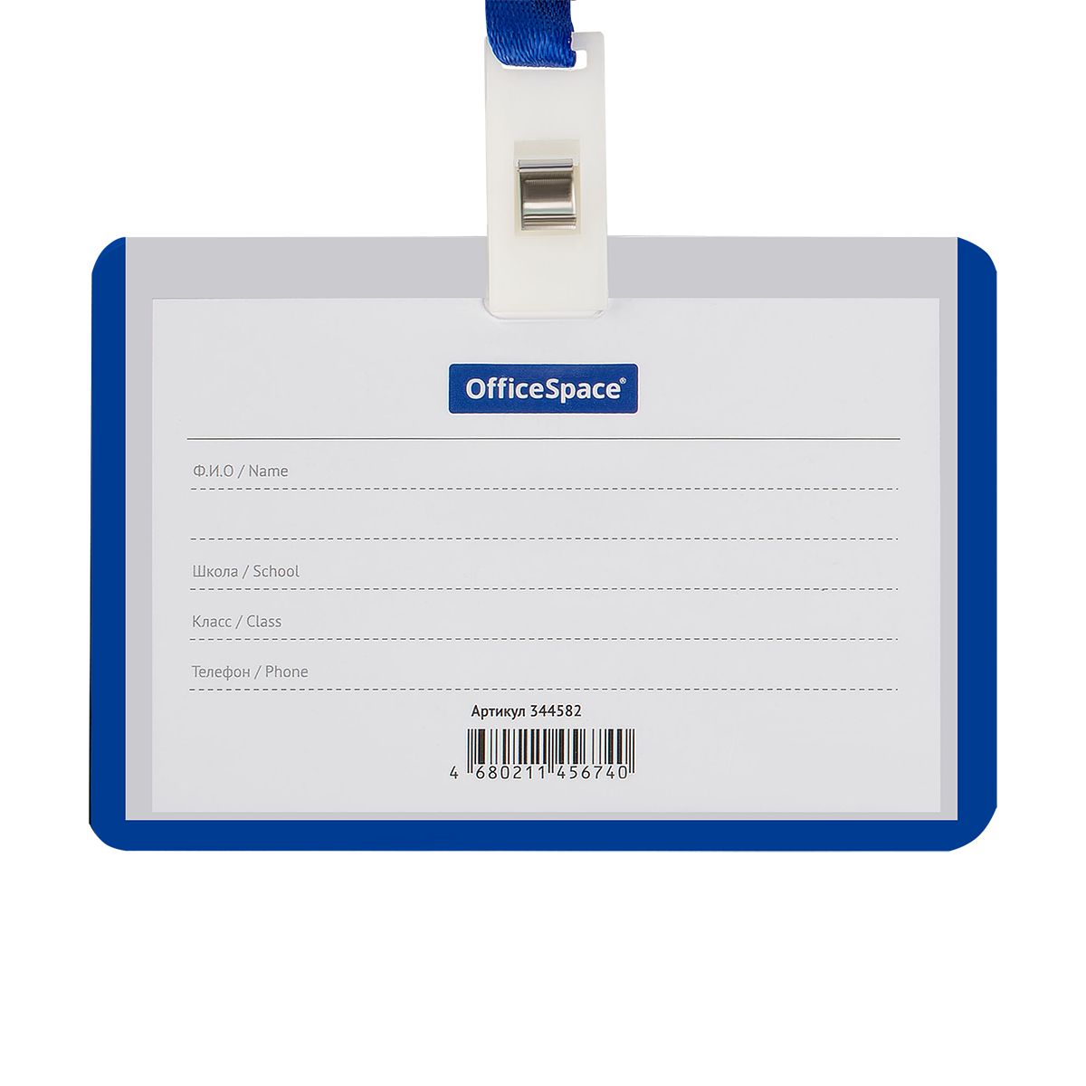 Бейдж горизонтальный OfficeSpace, 55*90мм, школьный синий, с клипсой на синей ленте
