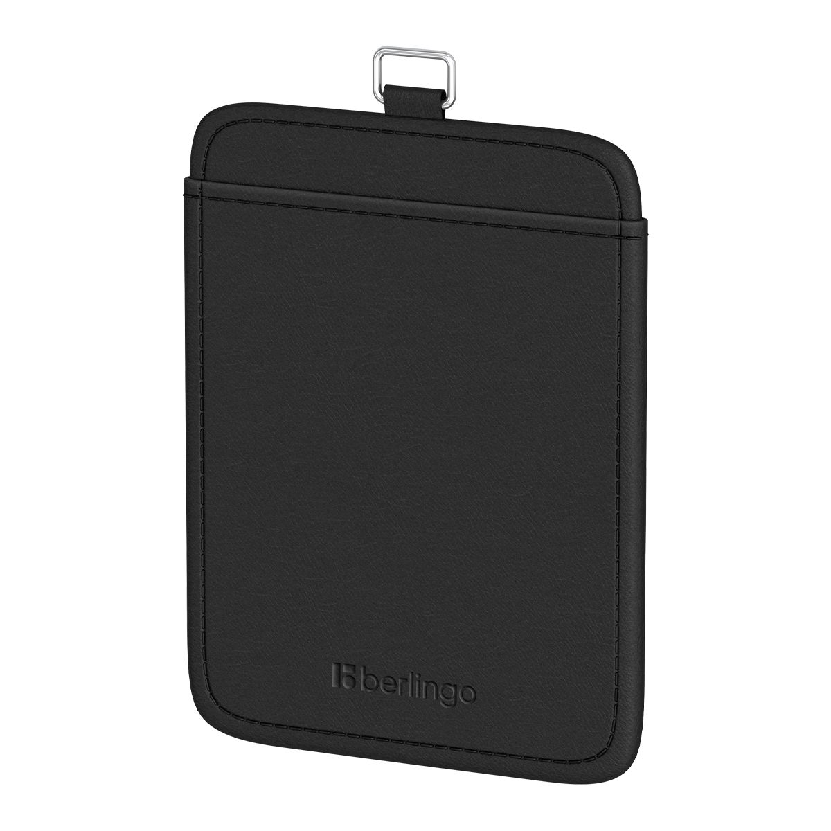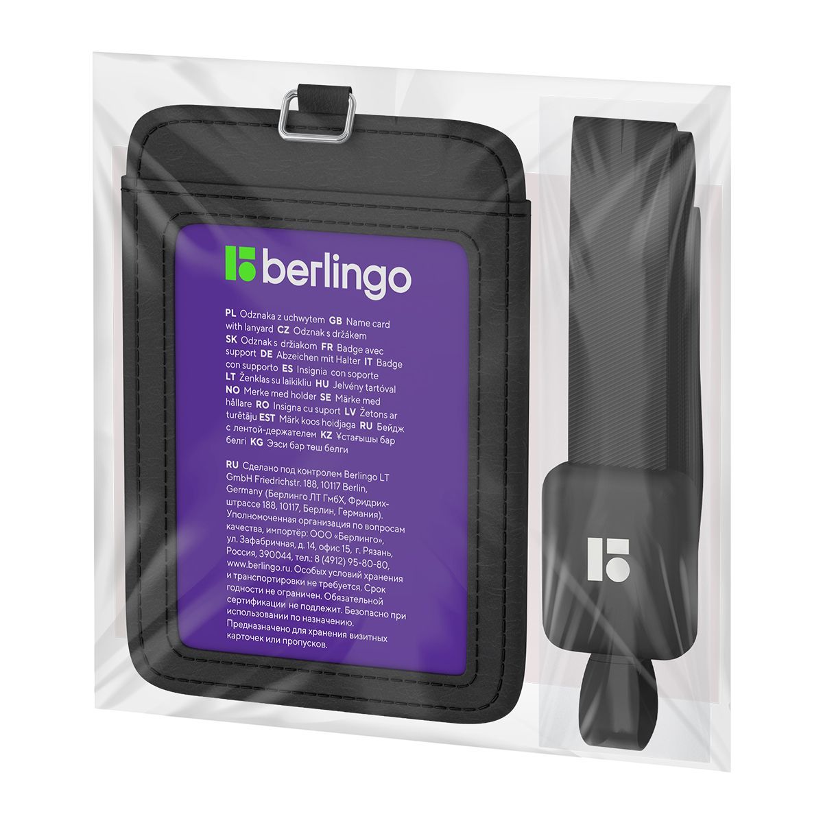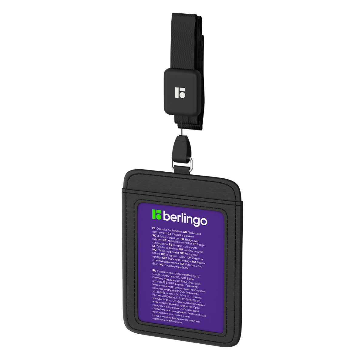Бейдж вертикальный Berlingo "ID 500", 55*85мм, экокожа, держатель-рулетка с лентой 45 см, черный