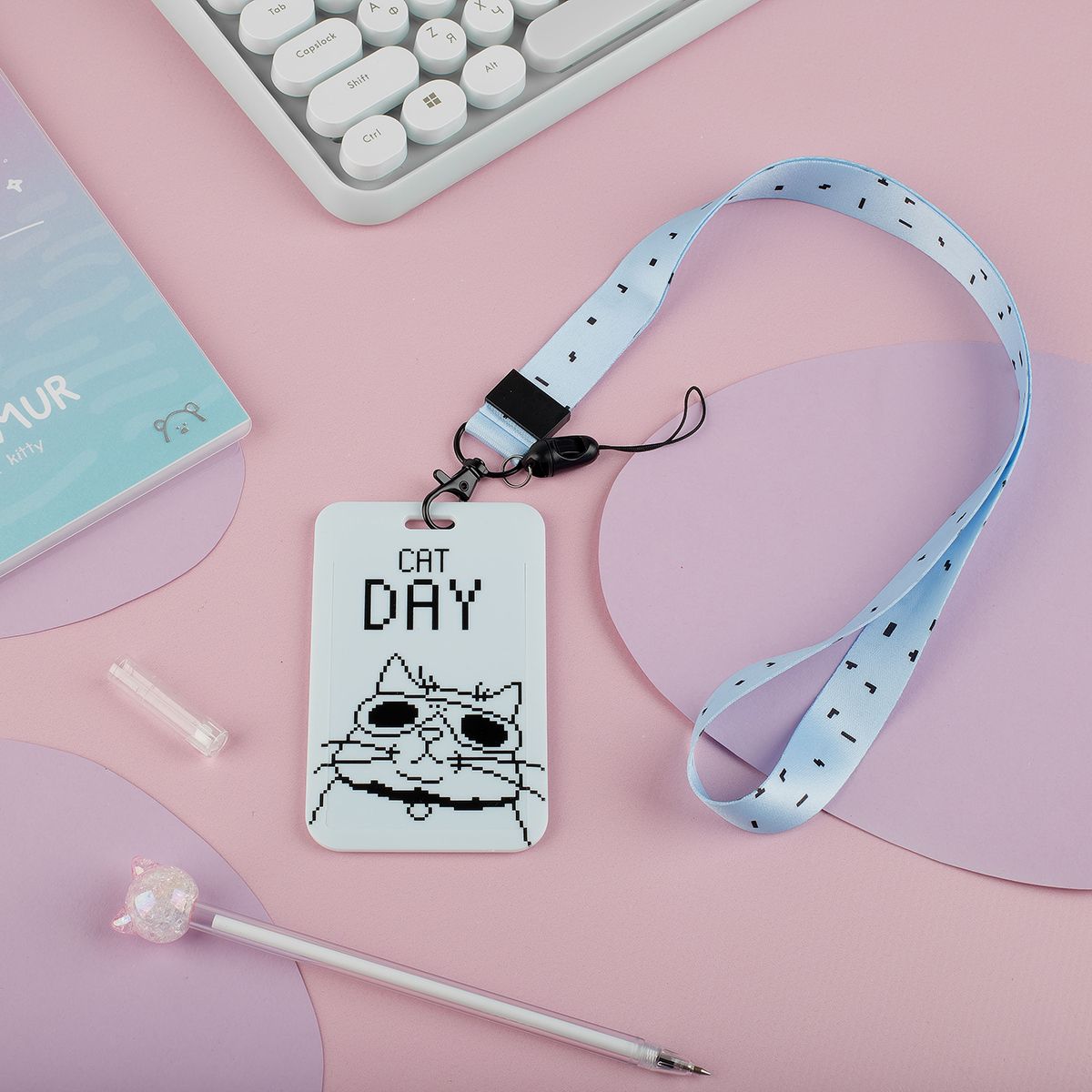 Бейдж вертикальный MESHU "Cat day", 110*70мм, лента с карабином, 3D печать, опп пакет с европодвесом