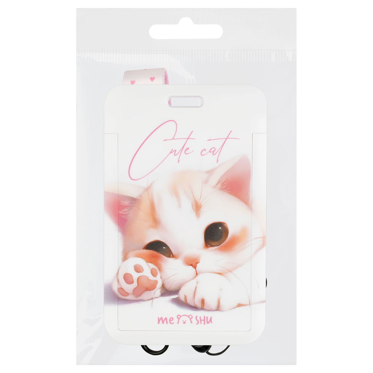 Бейдж вертикальный MESHU "Милый котик", 110*70мм, лента с карабином, 2D печать, опп пакет, европодвес