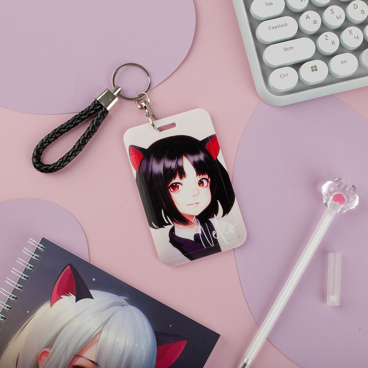 Бейдж вертикальный MESHU "Neko", 110*70мм, петля с карабином, 2D печать, опп пакет с европодвесом