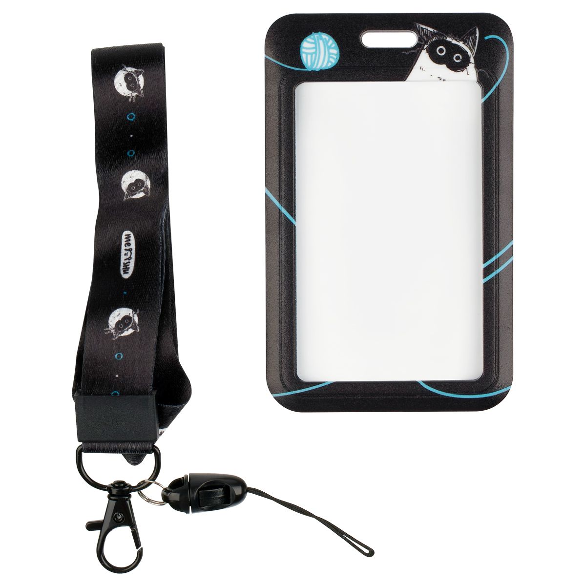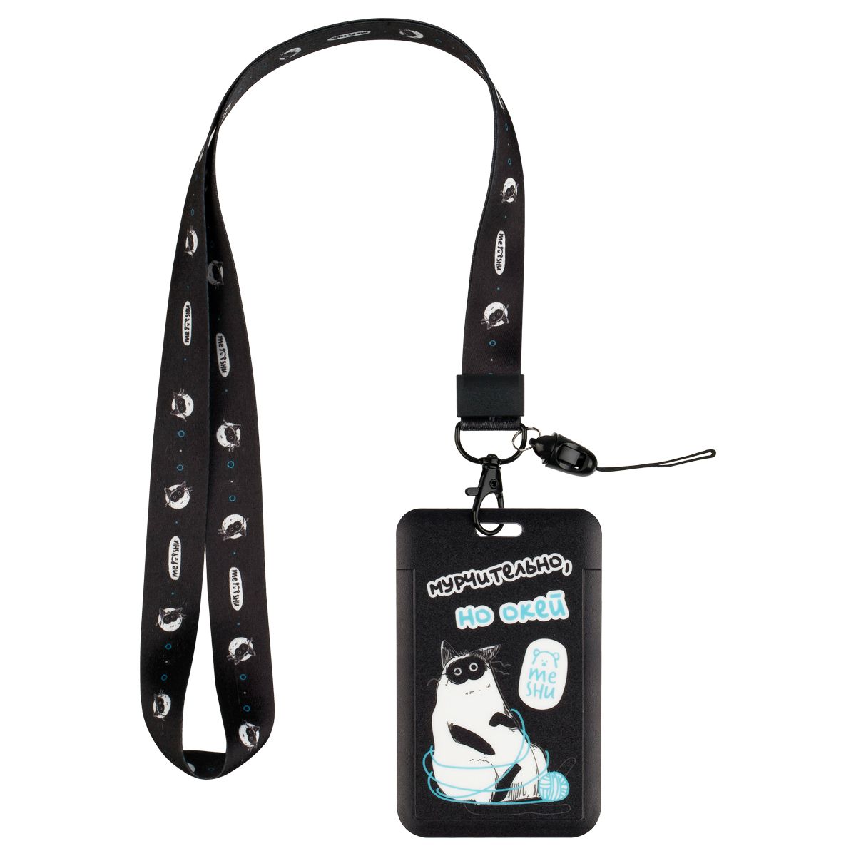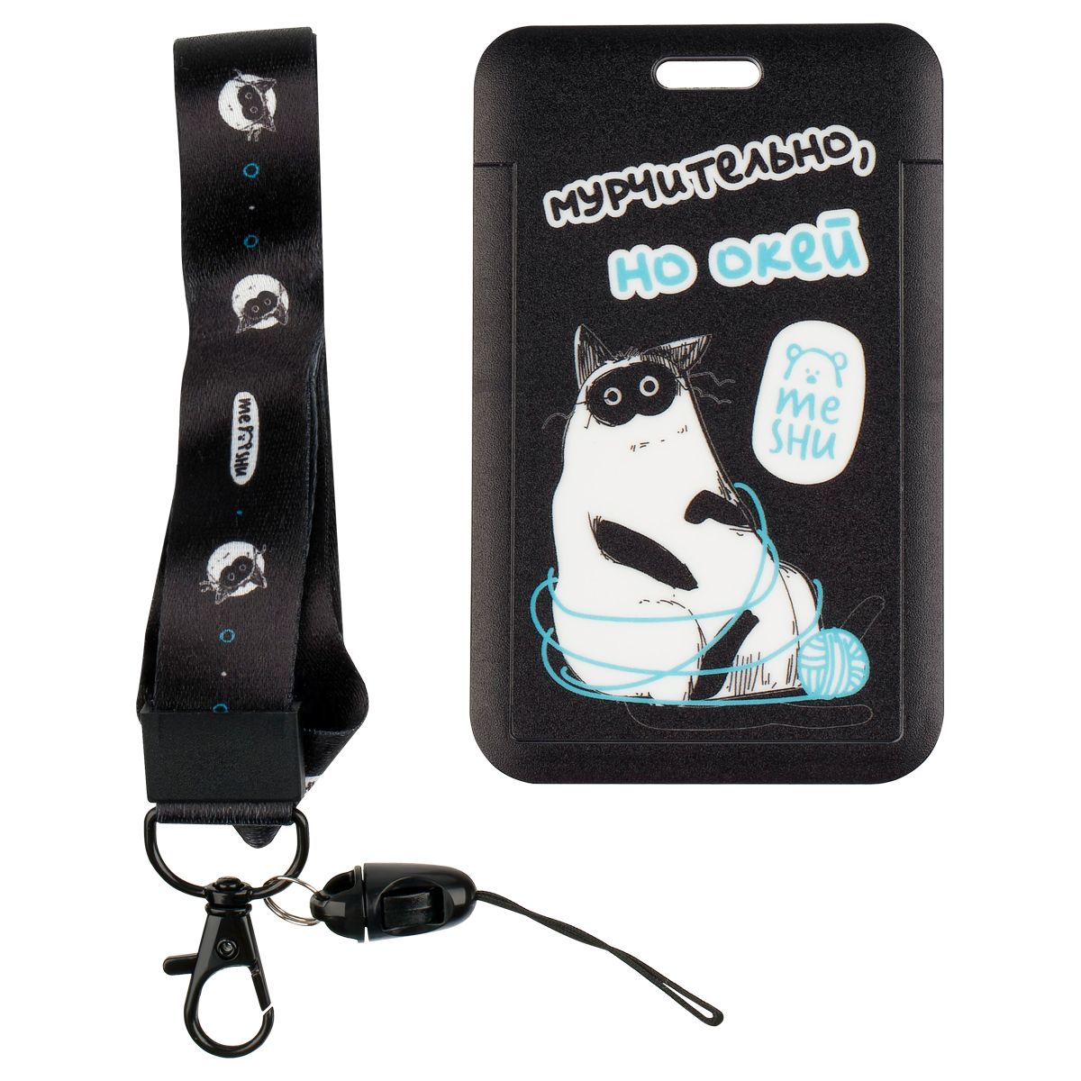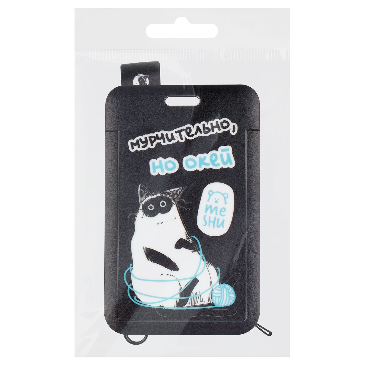 Бейдж вертикальный MESHU "Причудливый котик", 110*70мм, лента с карабином, 2D печать, опп пакет, европодвес