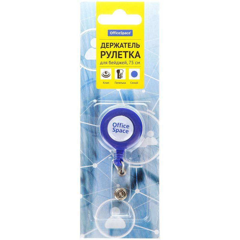 Держатель-рулетка для бейджей OfficeSpace, 75см, петелька, клип, синий, блистер